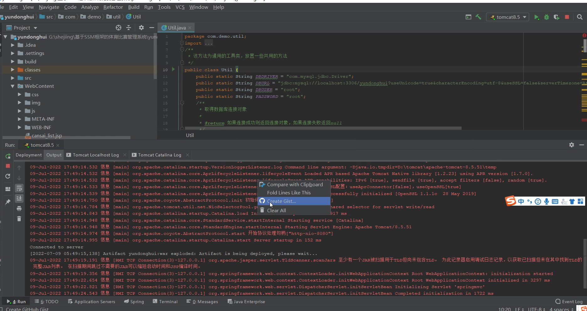环境: jdk8 tomcat8.5