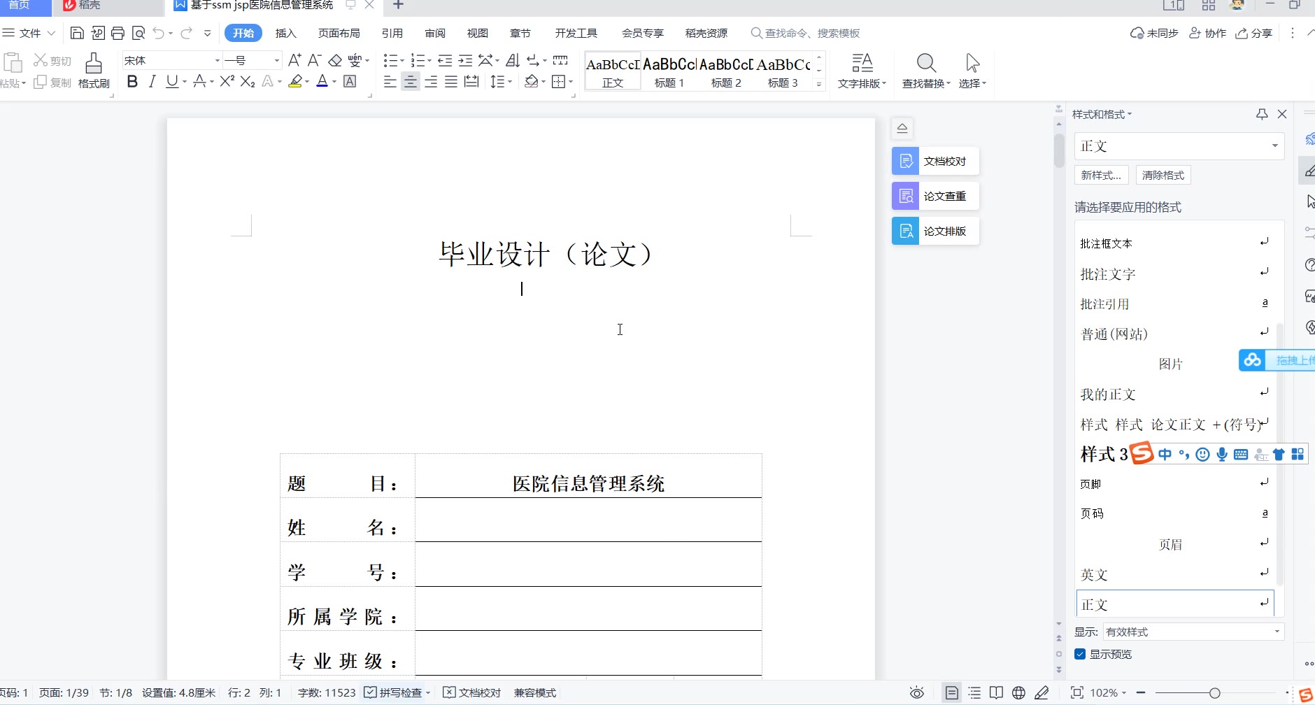 • (3)初稿 答辩PPT 开题报告 任务书 论文降重
