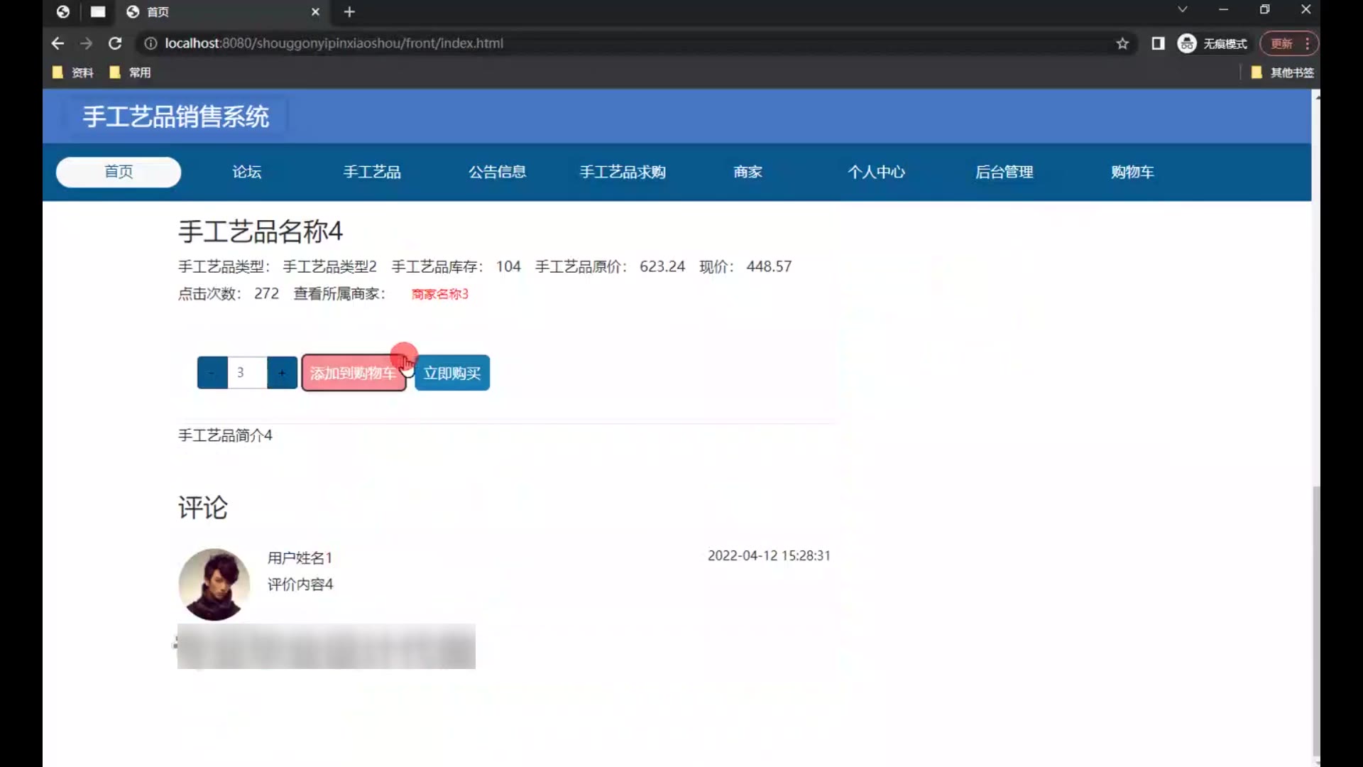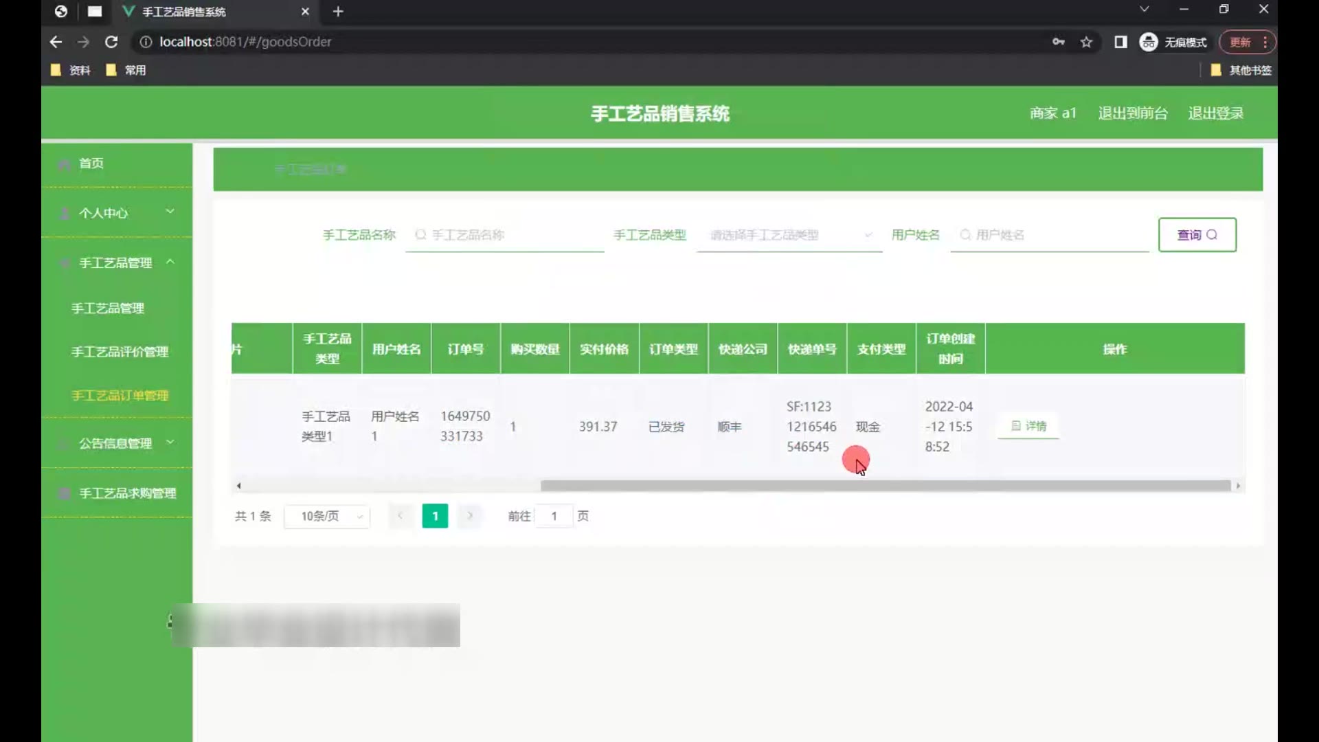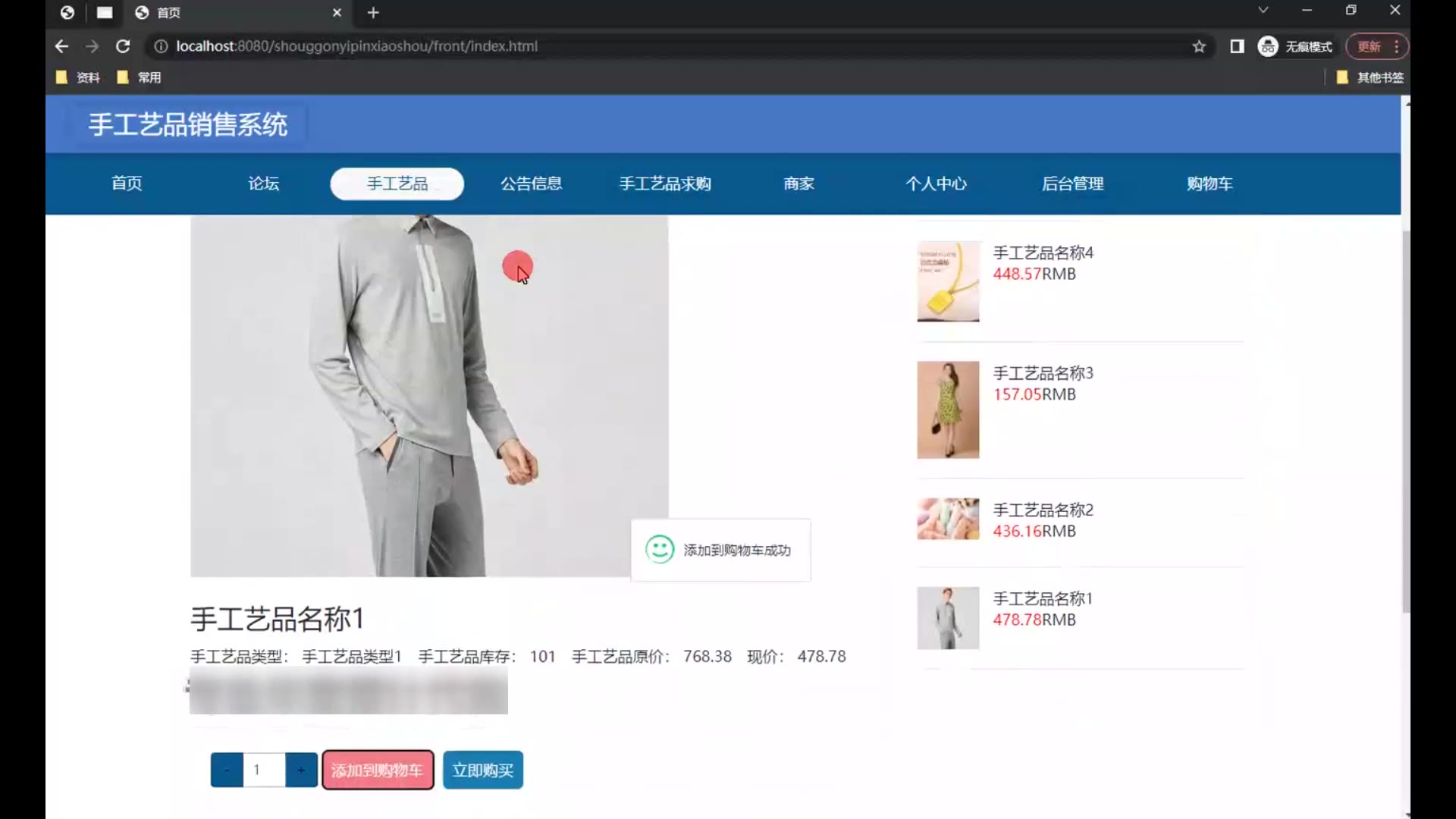 springboot手工艺品销售系统源码和论文1702