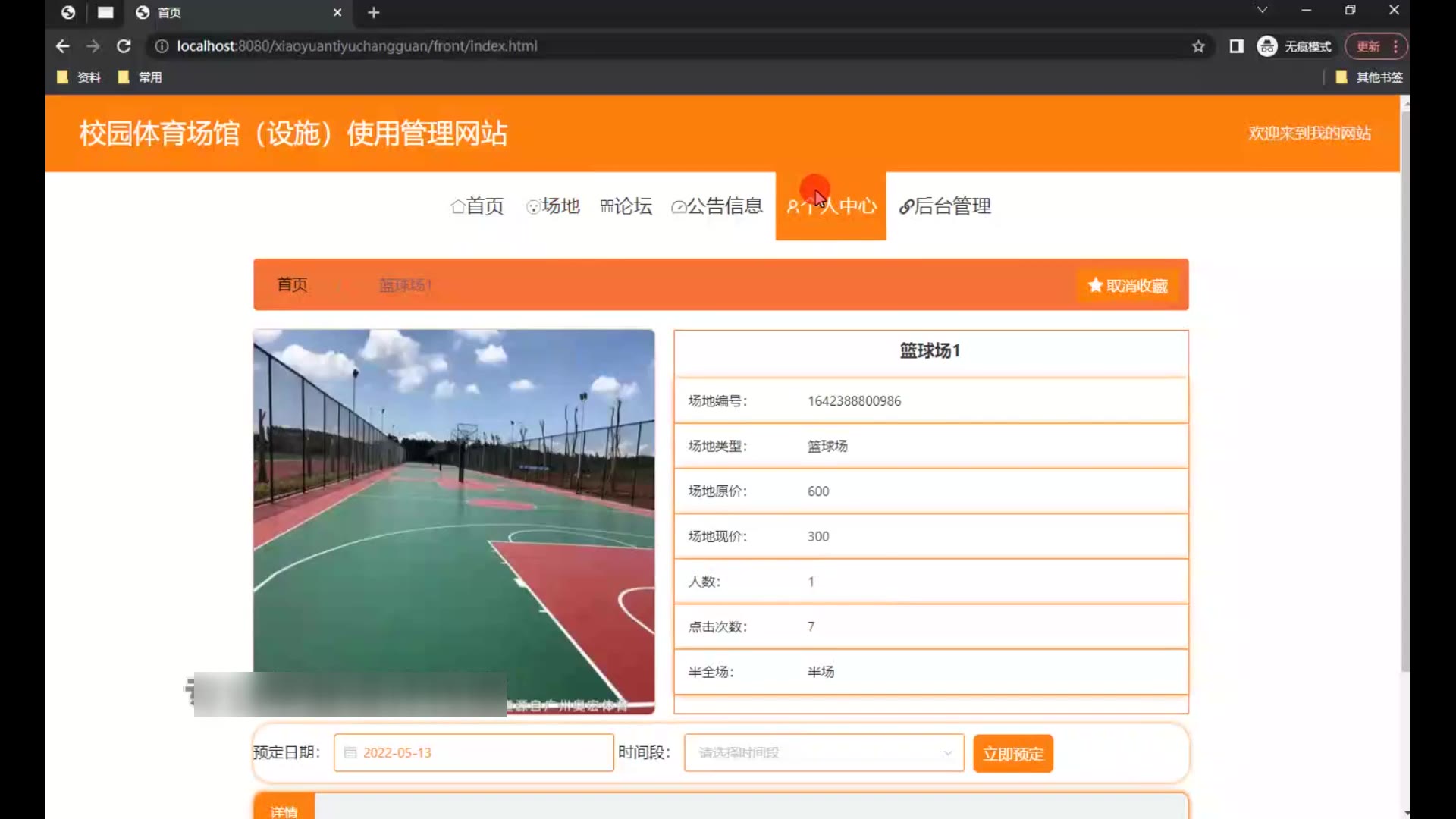 springboot校园体育场馆(设施)使用管理网站源码和论文1727