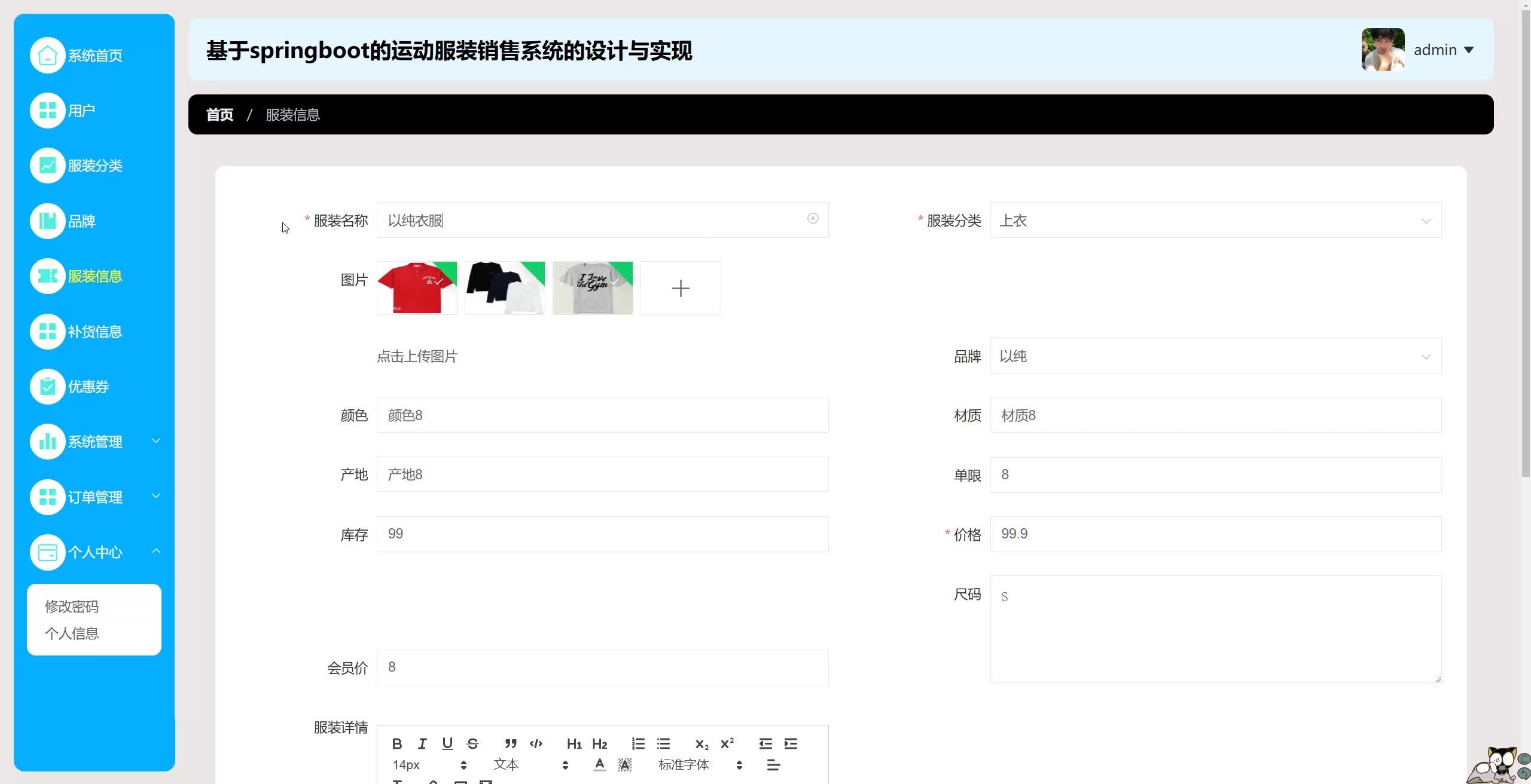 基于springboot vue的运动服装销售系统源码+论文springboot1749