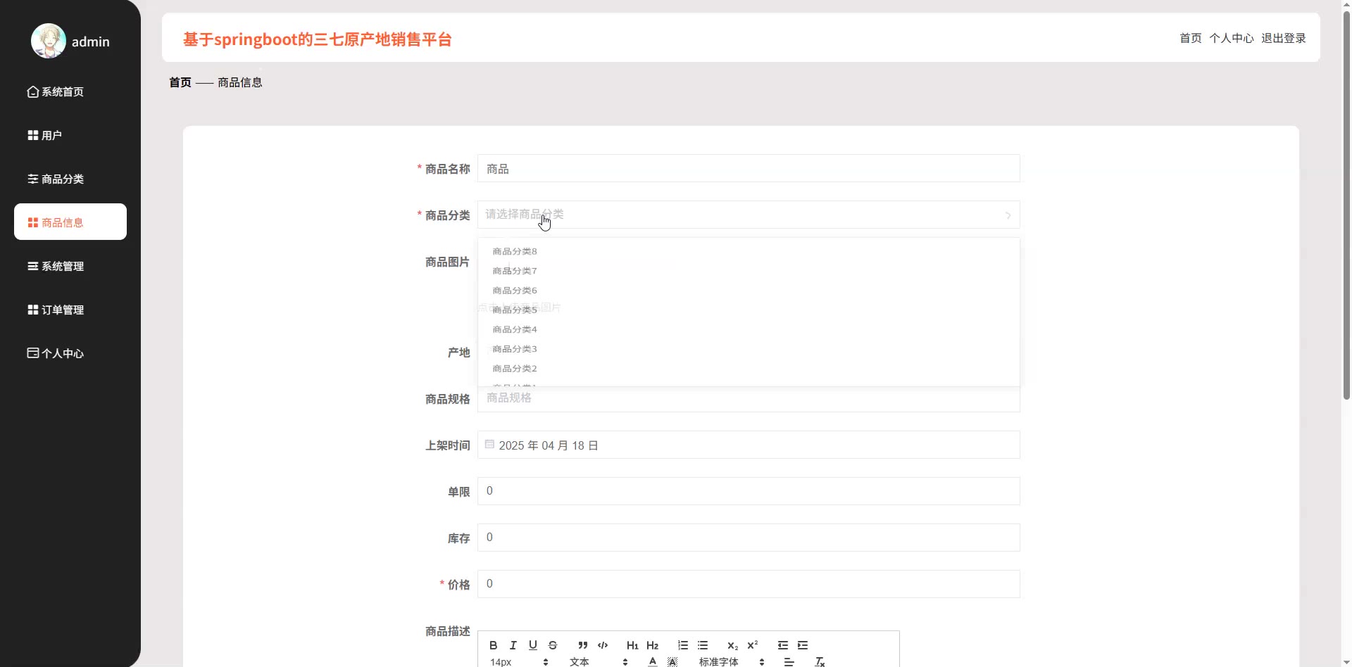 基于springboot的三七原产地销售平台java农产品交易系统源码+论文springboot1758