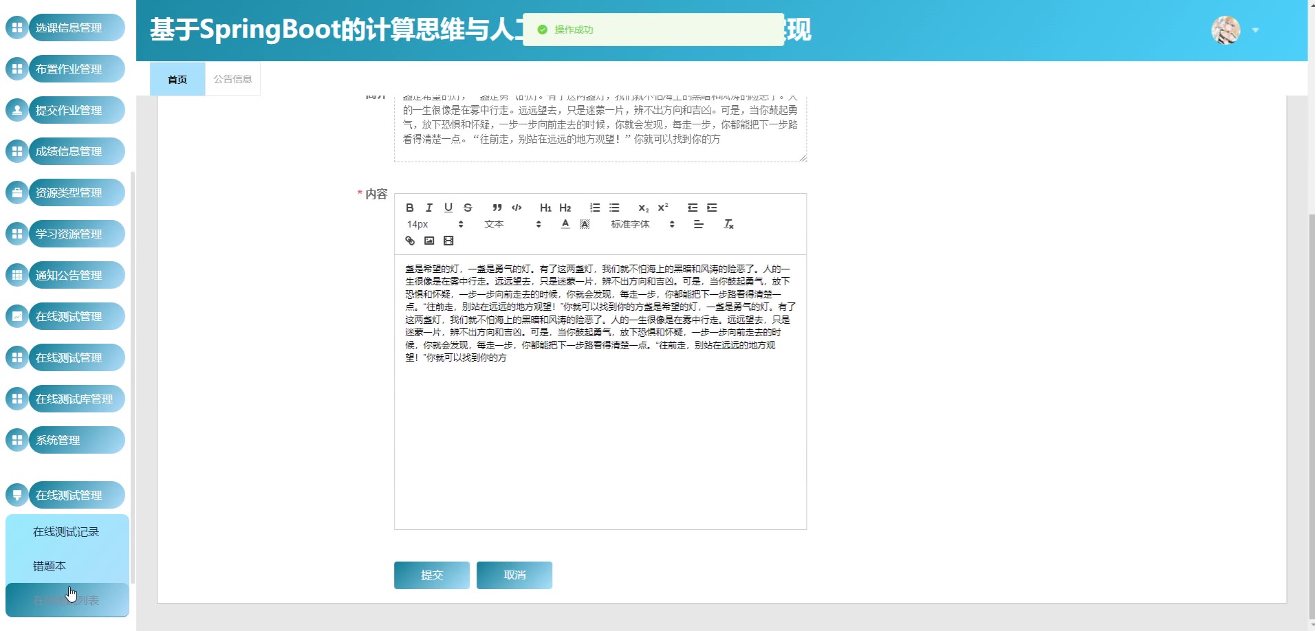 基于SpringBoot vue的计算思维与人工智能学习网站源码+论文springboot1765