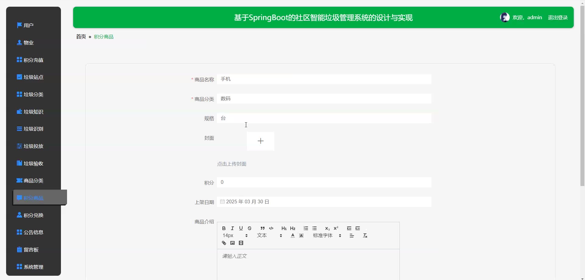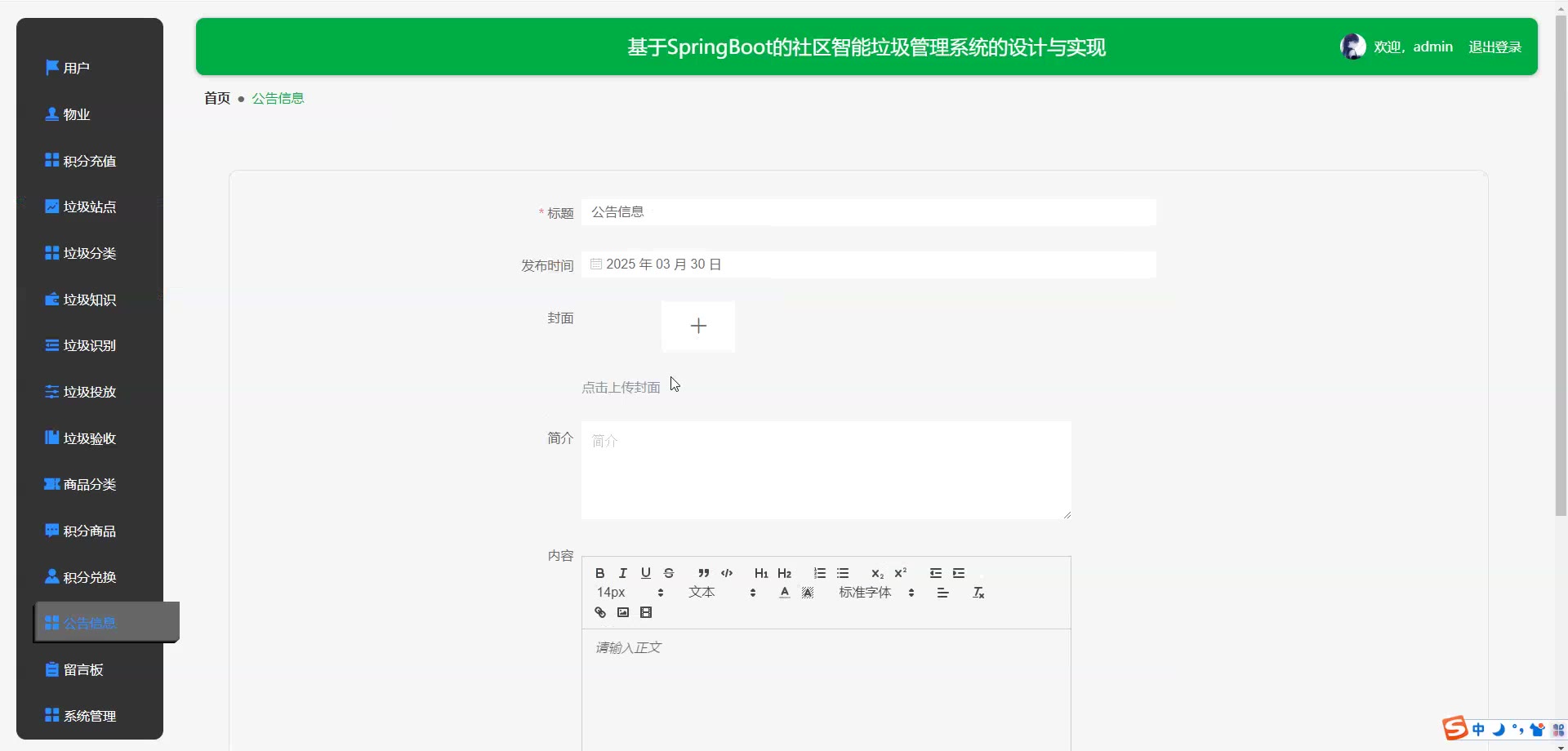 基于SpringBoot vue的社区智能垃圾管理系统源码+论文springboot1766