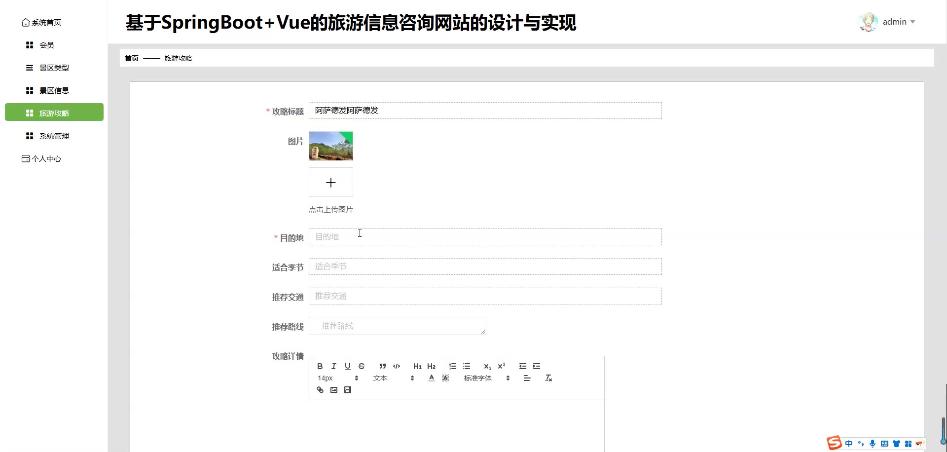 基于SpringBoot+Vue的旅游信息咨询网站源码+论文springboot1774