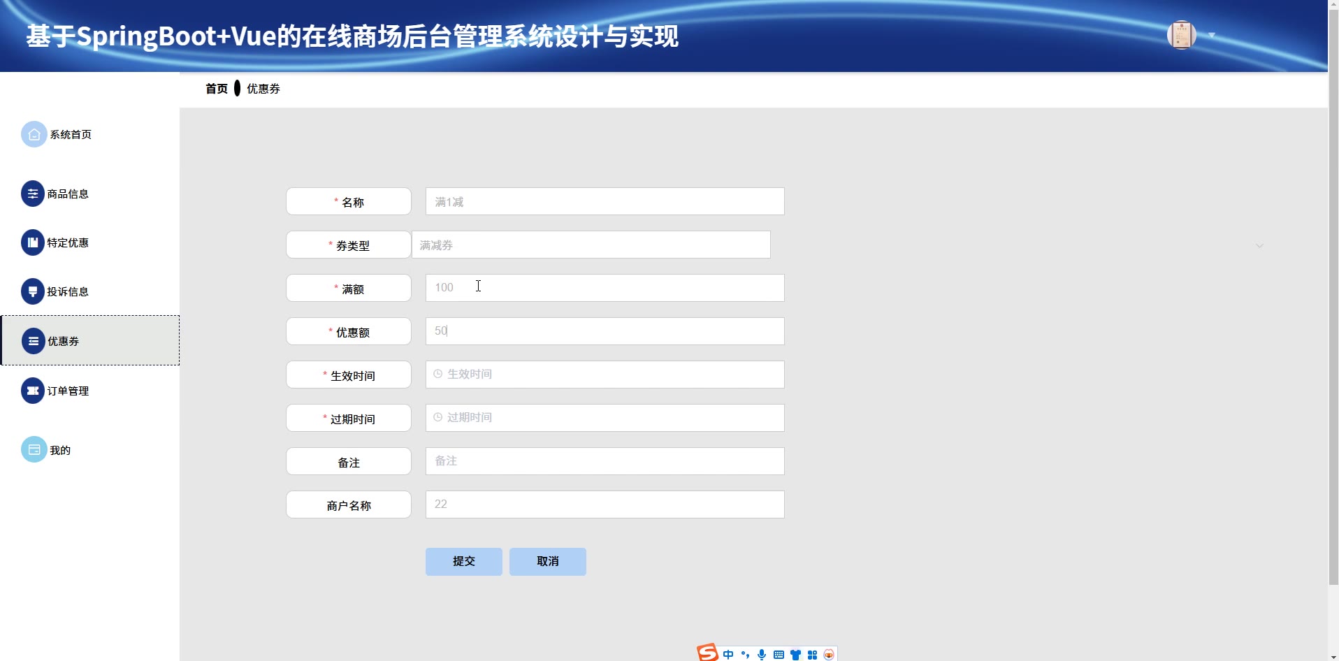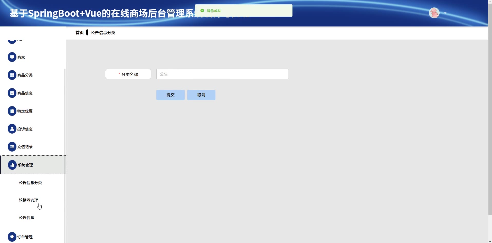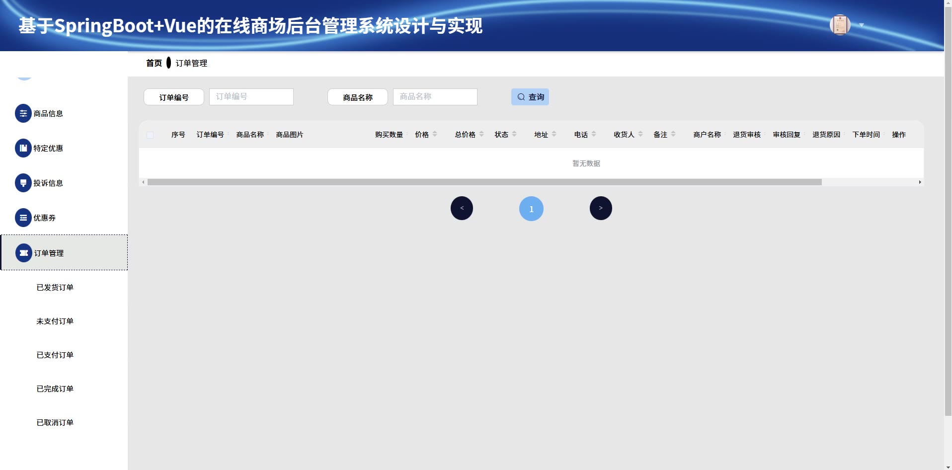 基于SpringBoot+Vue的在线商场后台管理系统源码+论文springboot1777