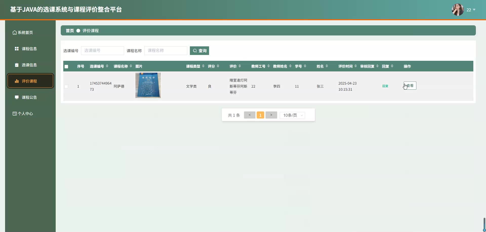 基于JAVA的SpringBoot Vue选课系统与课程评价整合平台源码+论文springboot1789