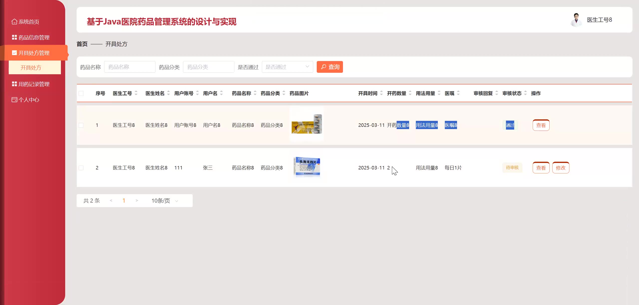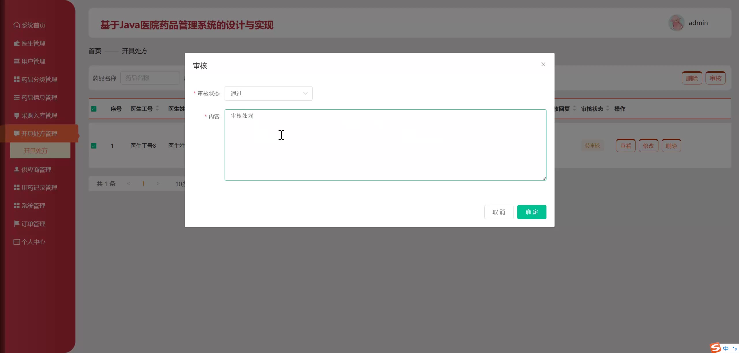 基于Java SpringBoot Vue医院药品管理系统源码+论文springboot1790