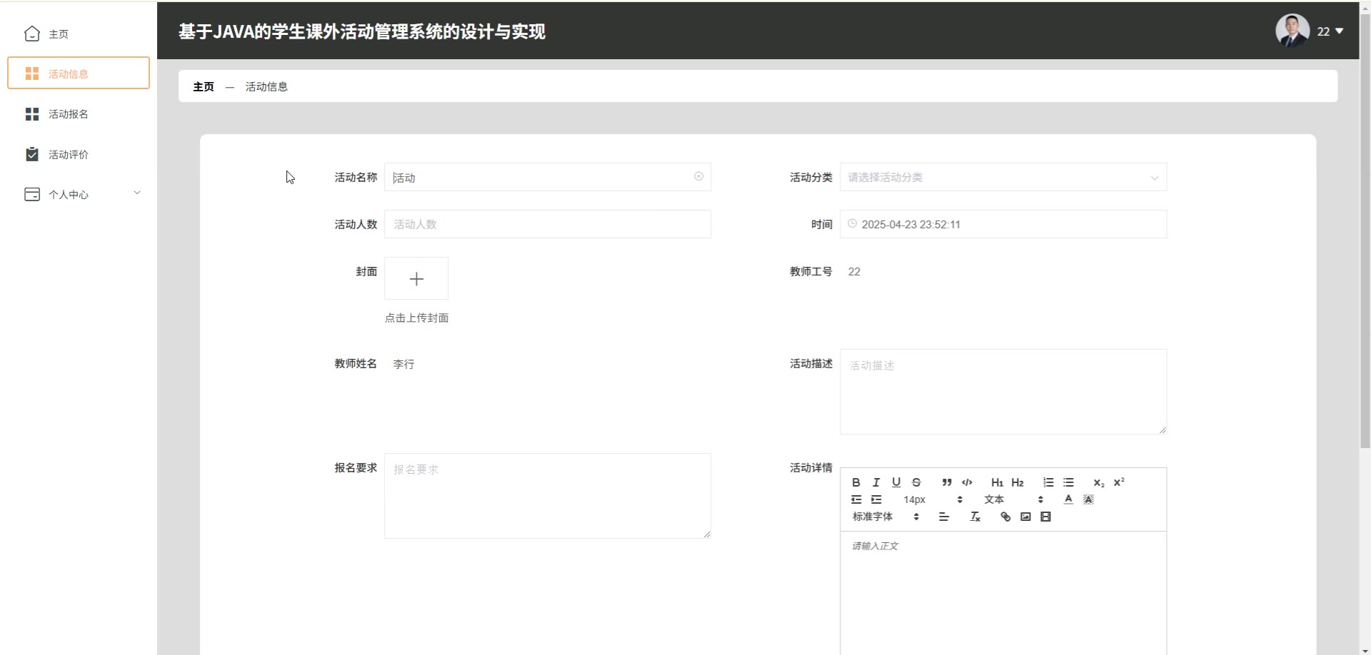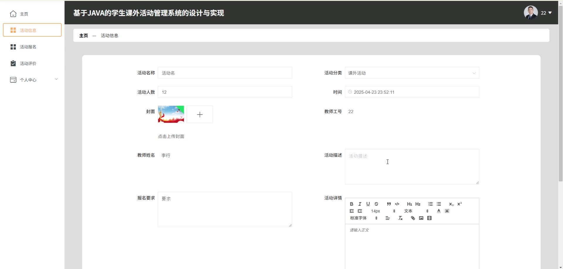 基于JAVA的SpringBoot Vue学生课外活动管理系统源码+论文springboot1791