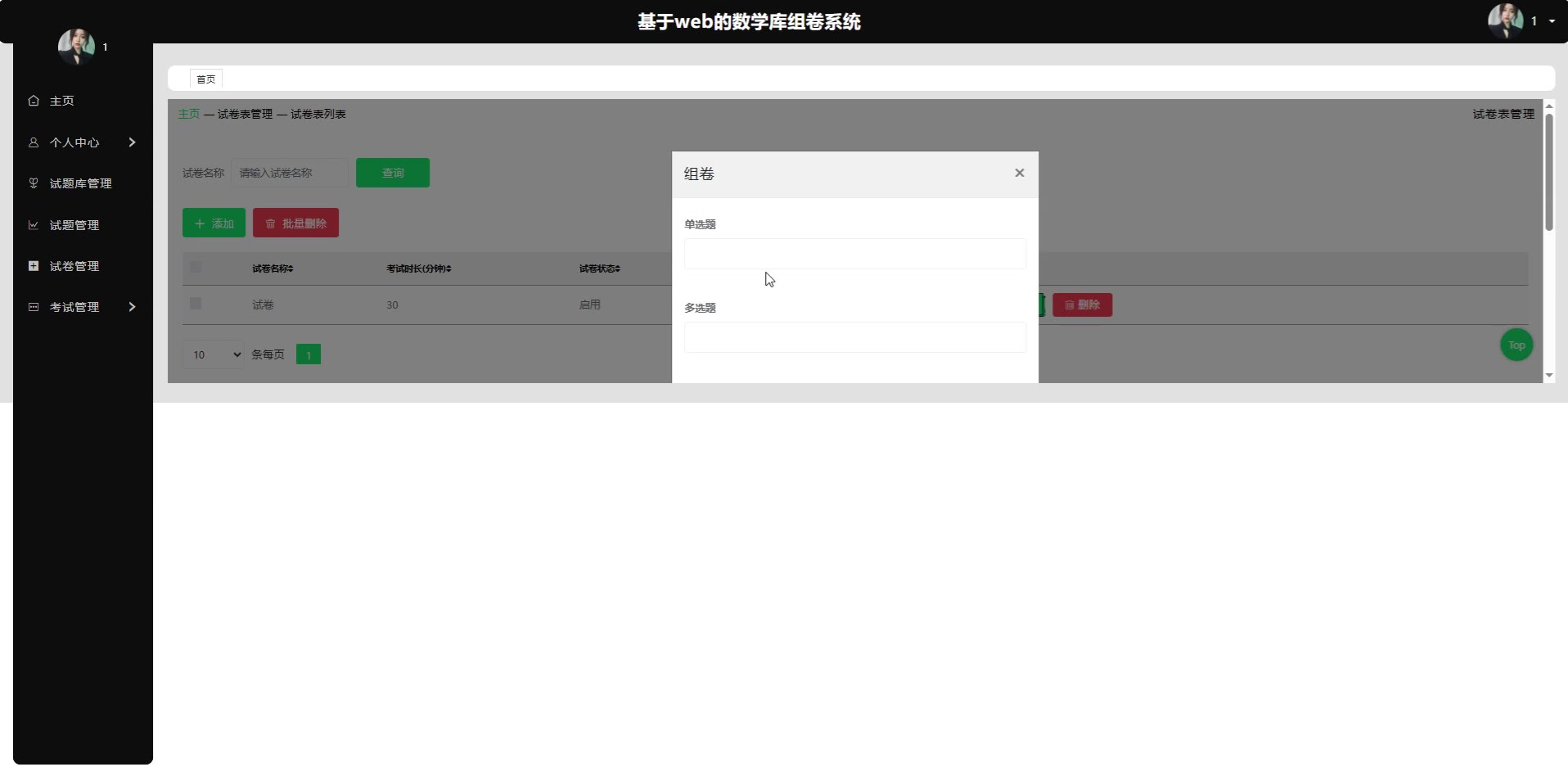 基于web的SpringBoot Vue数学库组卷系统Java题库管理源码+论文springboot1806