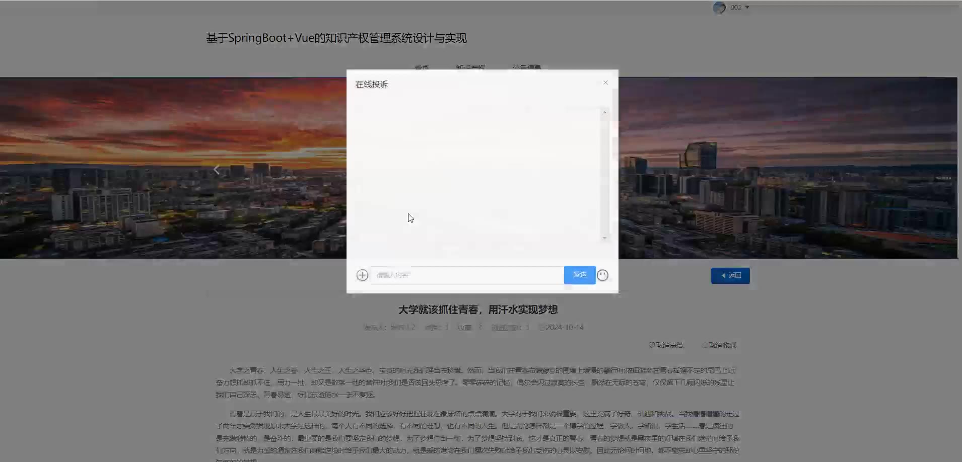 基于SpringBoot+Vue的知识产权管理系统源码+论文springboot1833