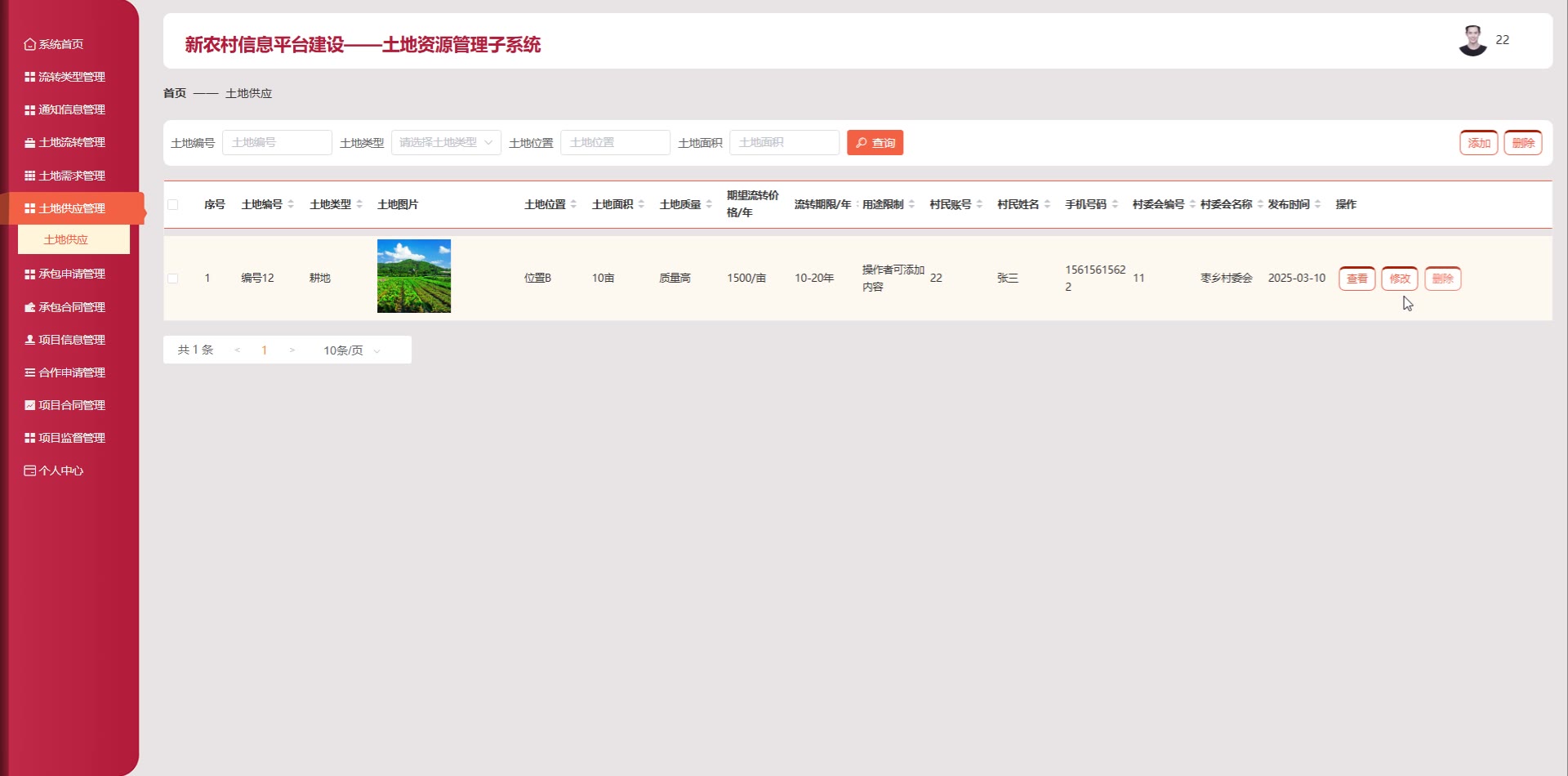 SpringBoot Vue新农村信息平台建设平台java web土地资源管理子系统源码+论文springboot1837