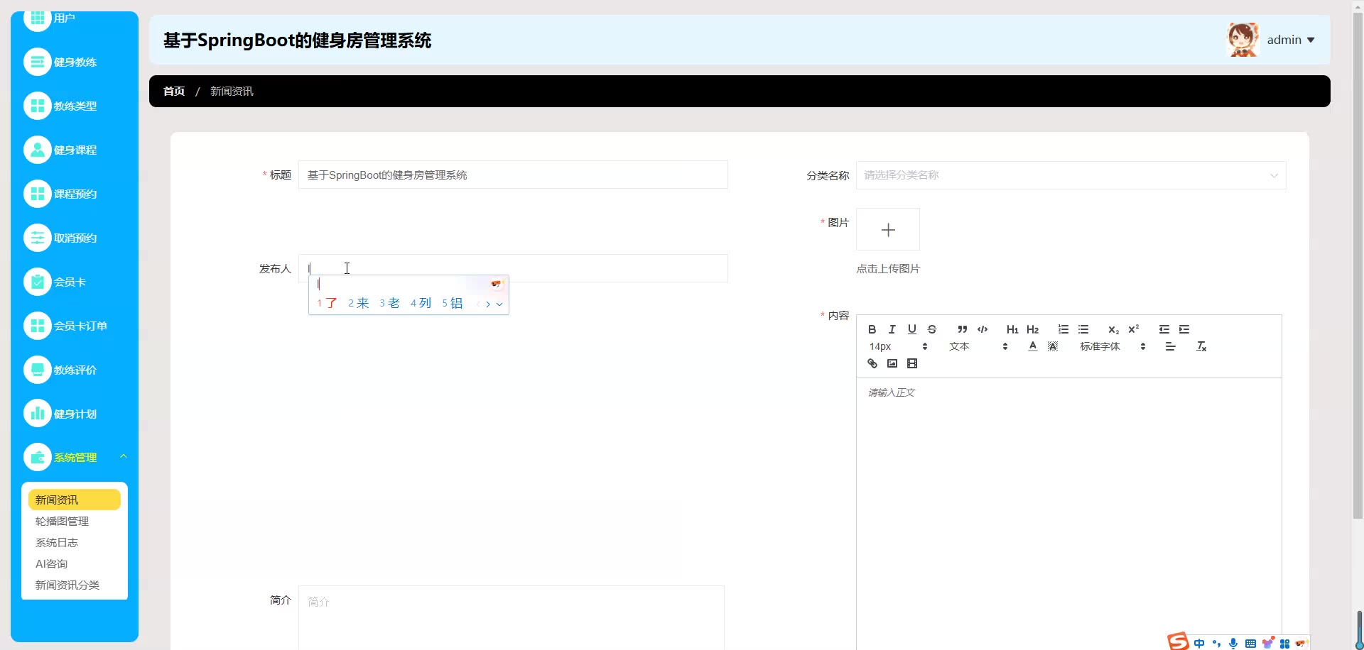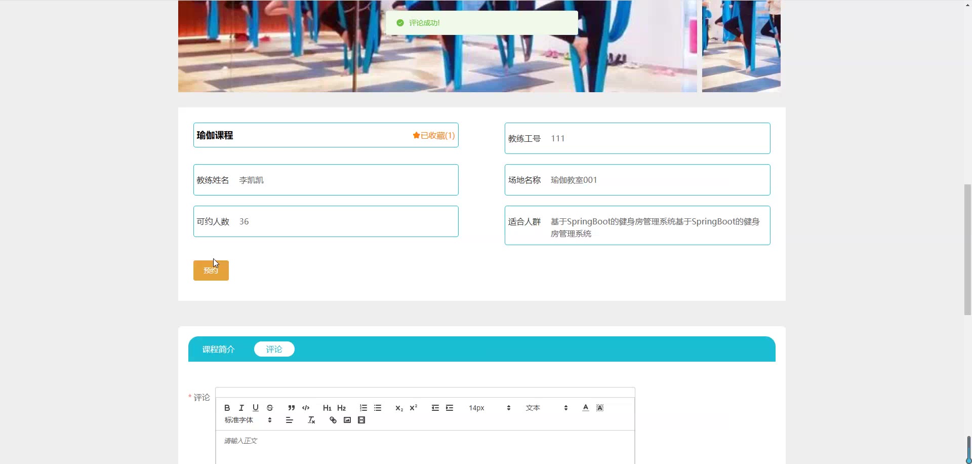 基于SpringBoot Vue的健身房管理系统源码+论文springboot1852