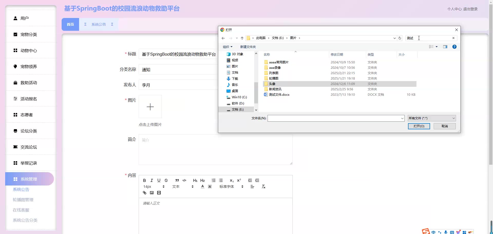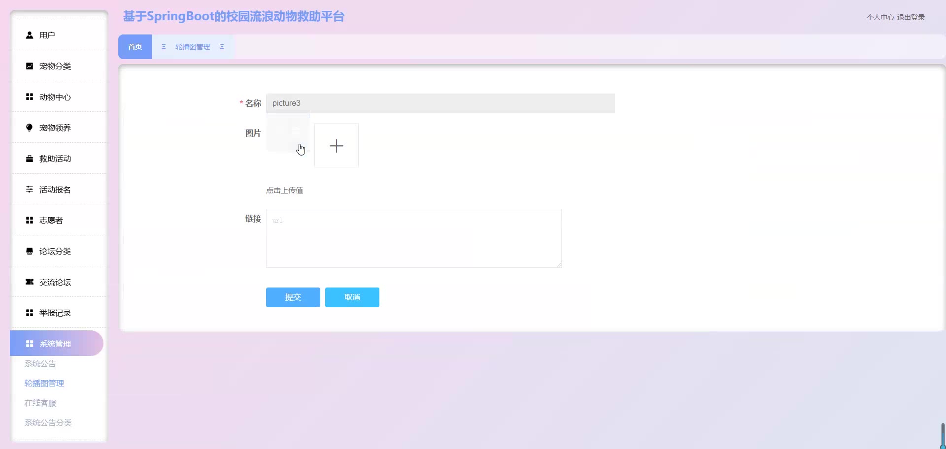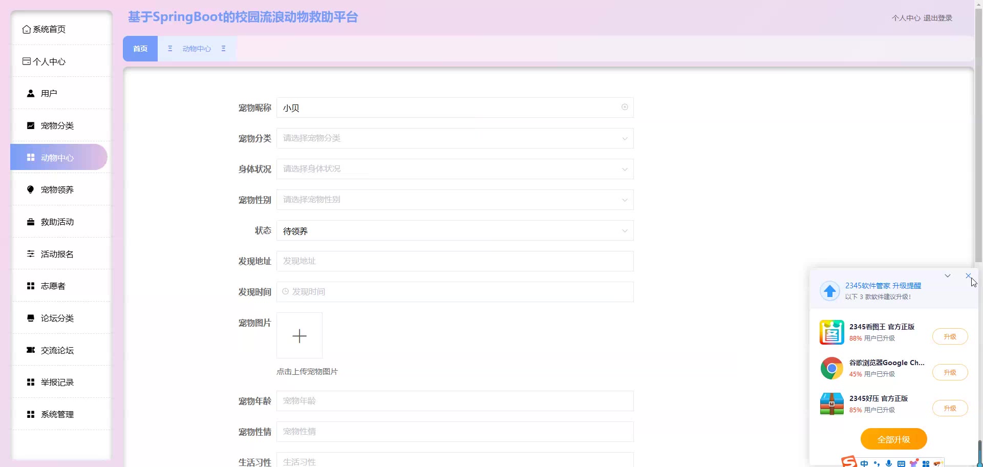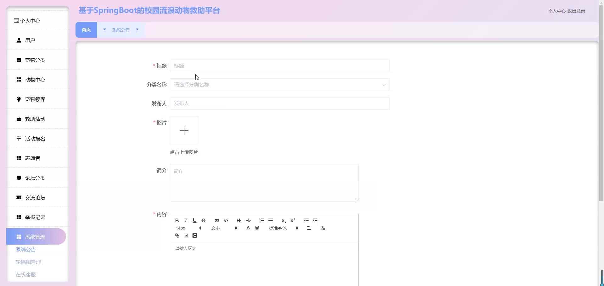 基于SpringBoot Vue的校园流浪动物救助平台源码+论文springboot1861