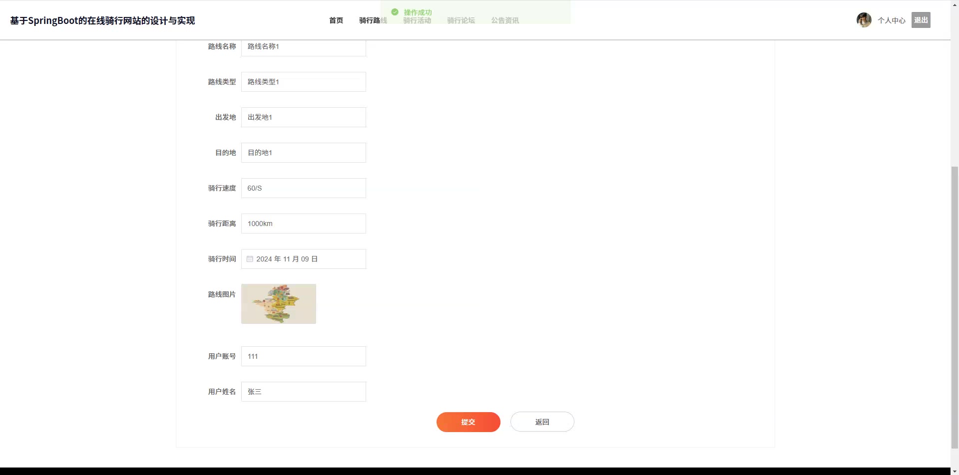 基于SpringBoot Vue的在线骑行网站源码+论文springboot1867