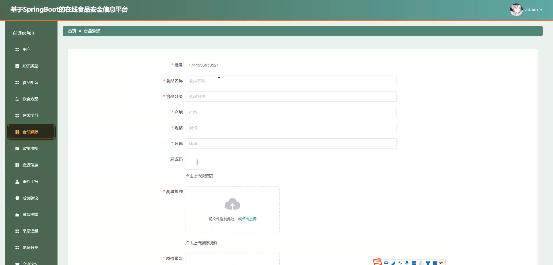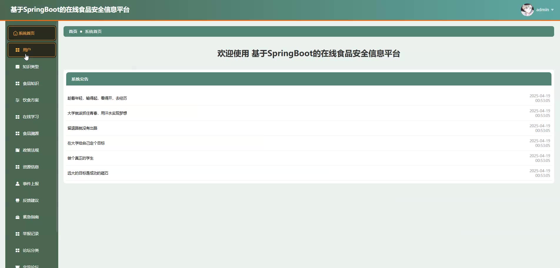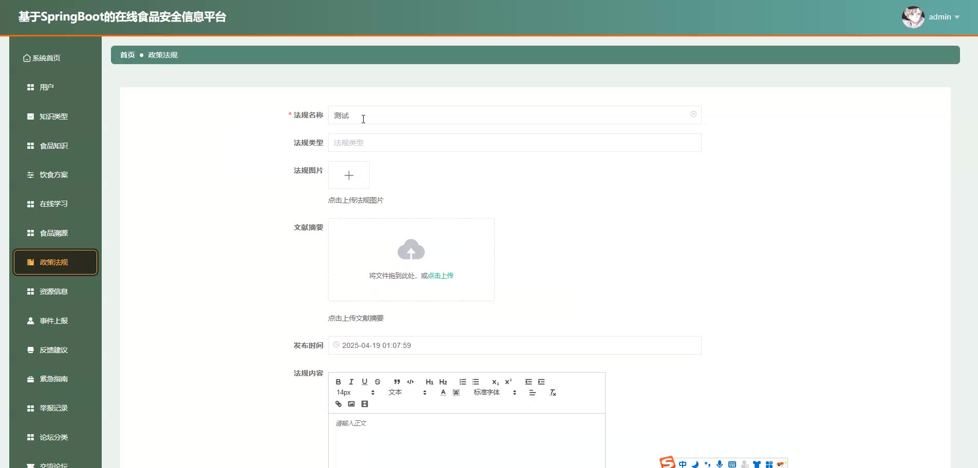基于SpringBoot Vue的在线食品安全信息平台源码+论文springboot1868