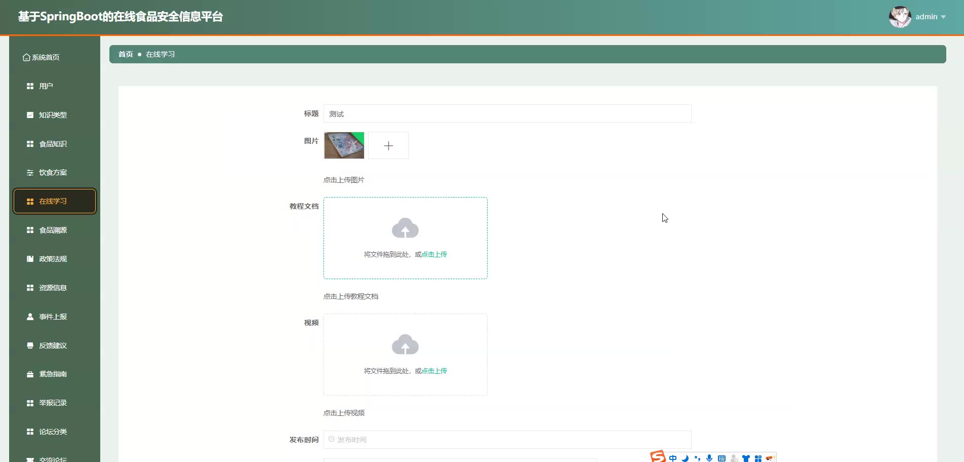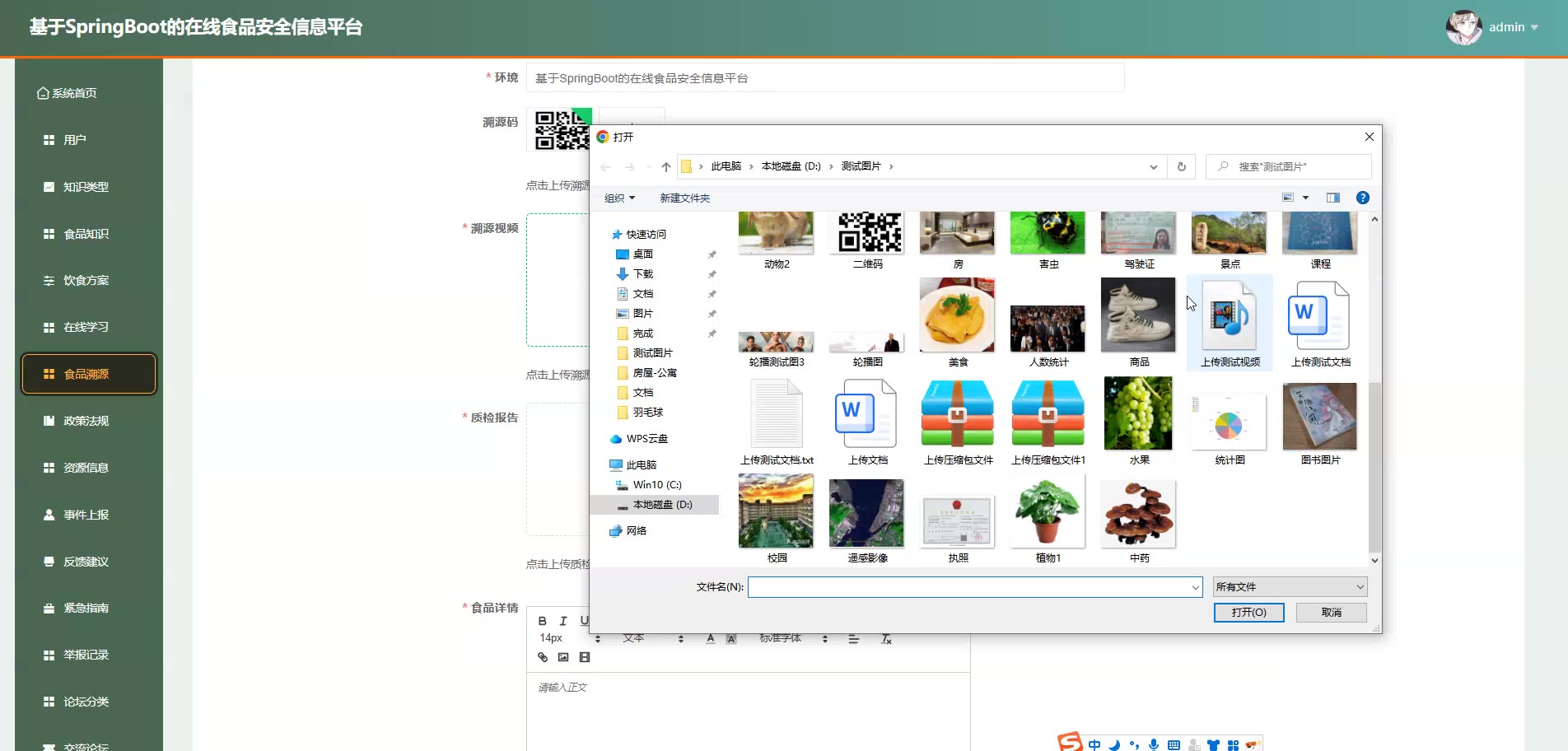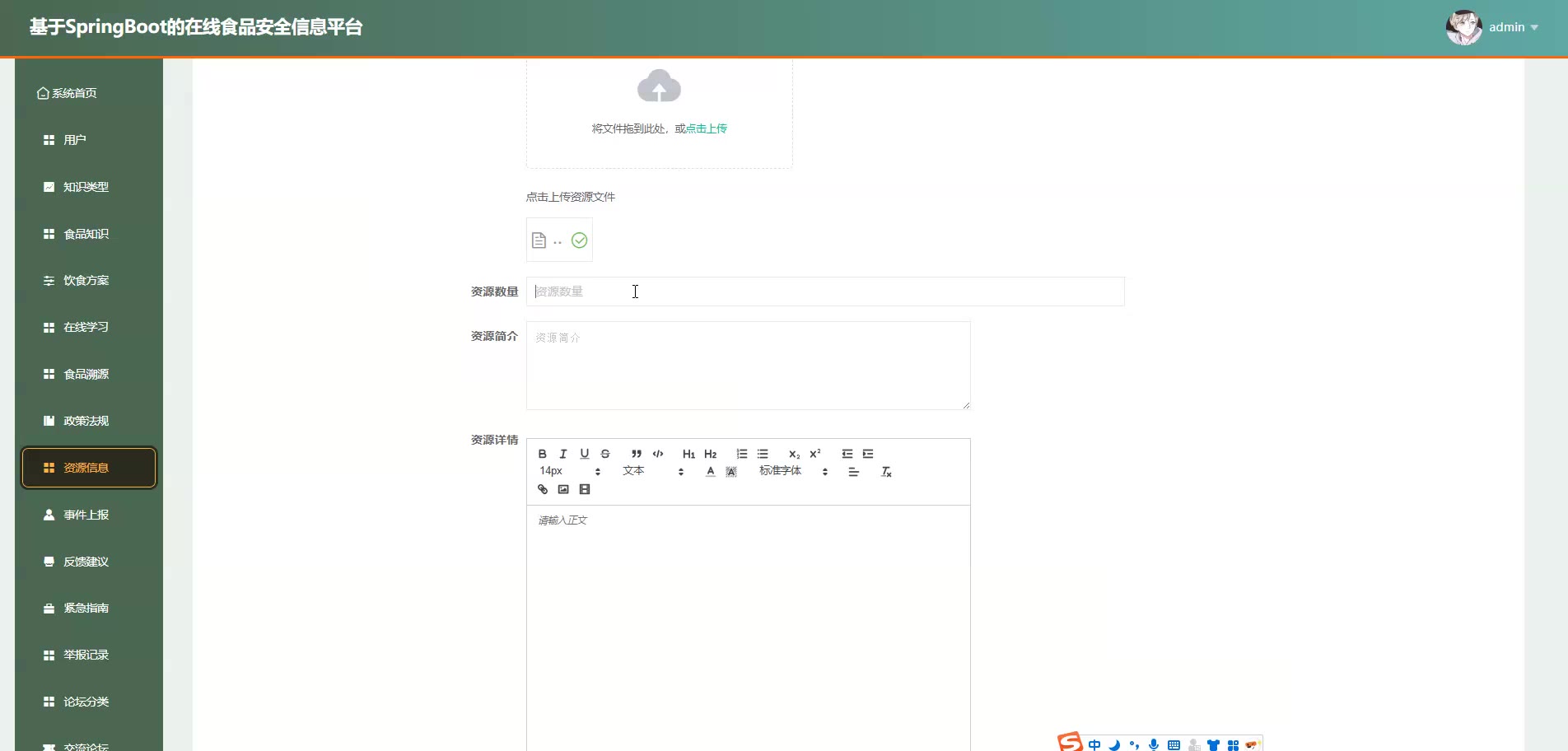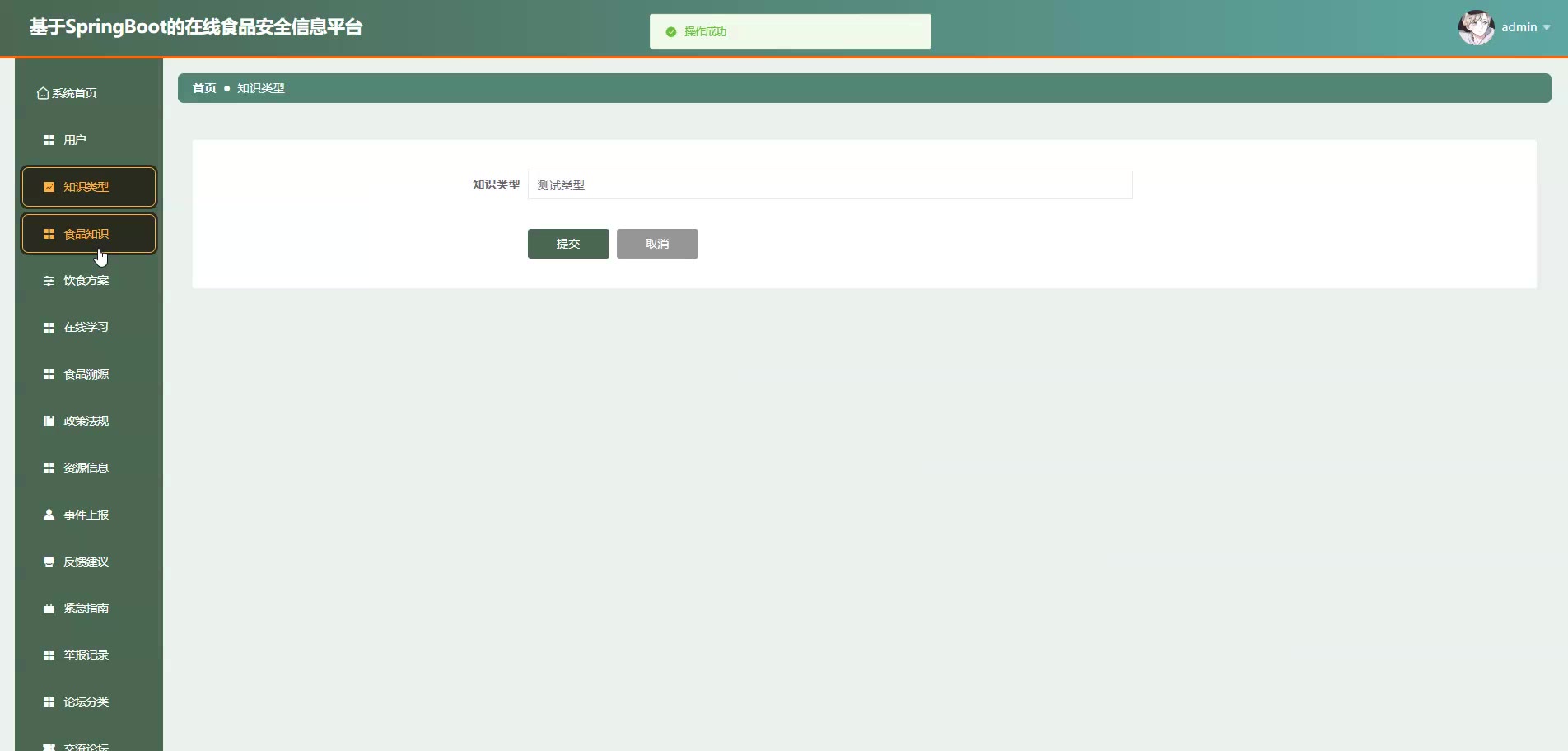 基于SpringBoot Vue的在线食品安全信息平台源码+论文springboot1868