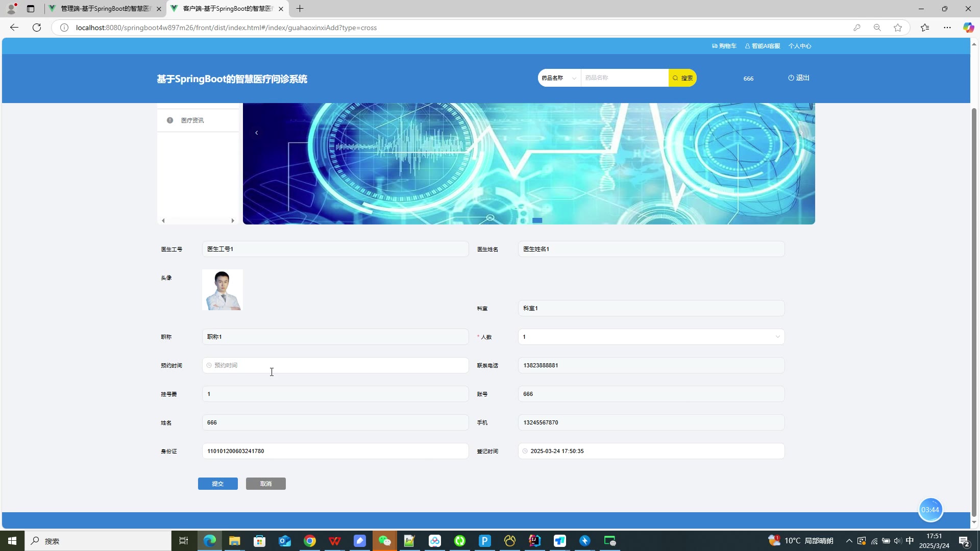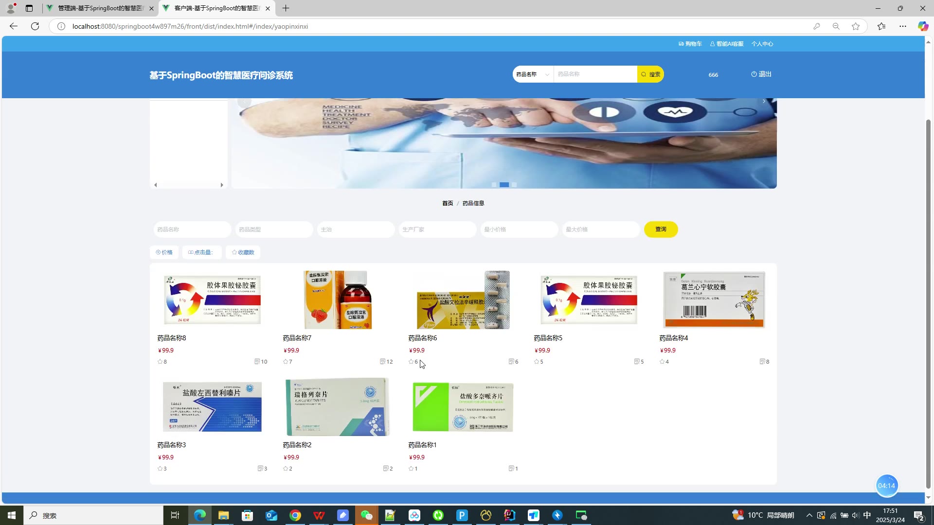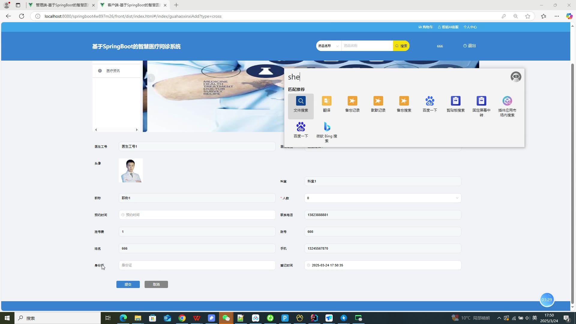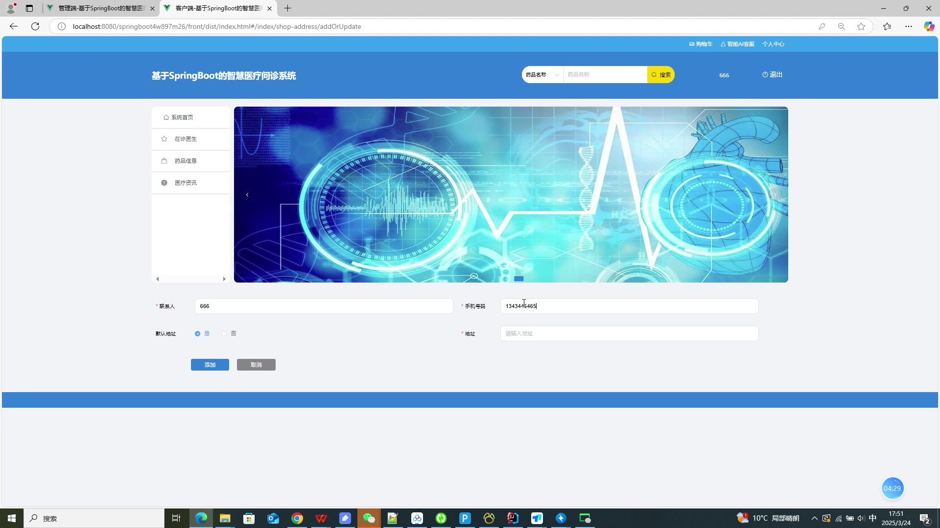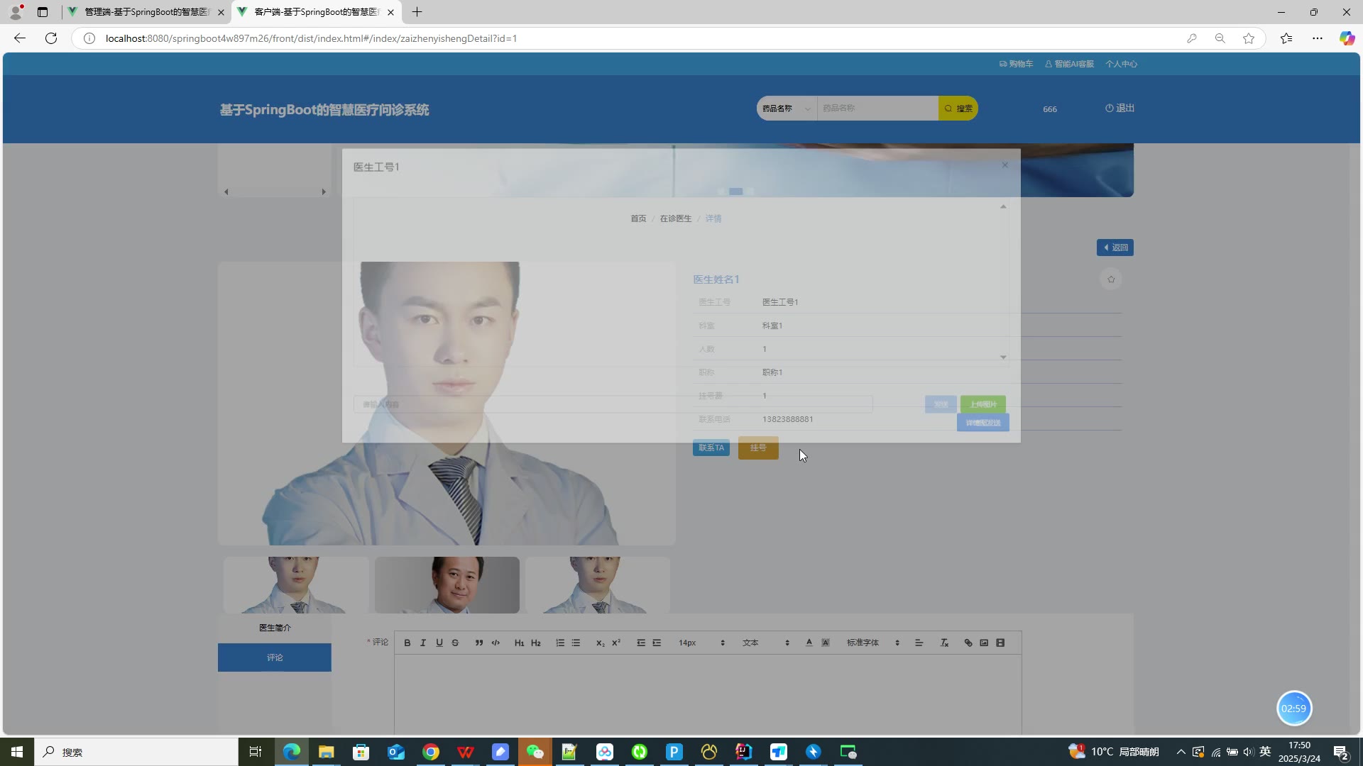 基于SpringBoot Vue的智慧医疗问诊系统源码+答辩PPT+论文springboot1874