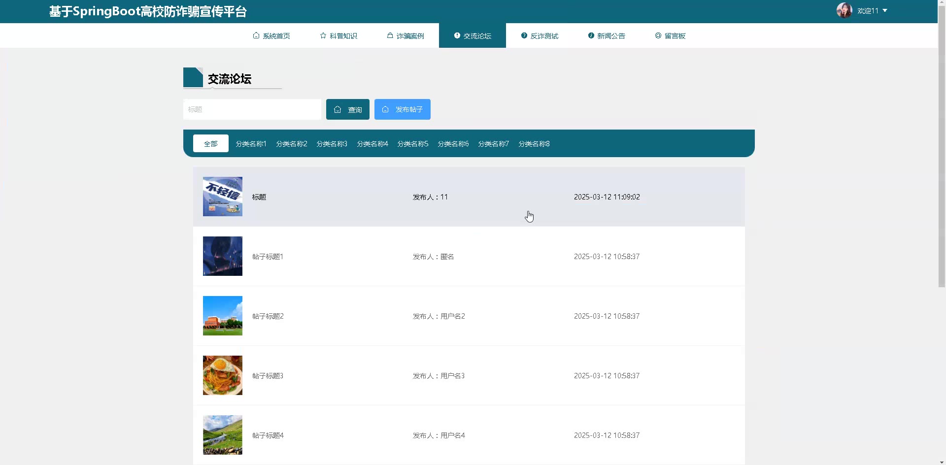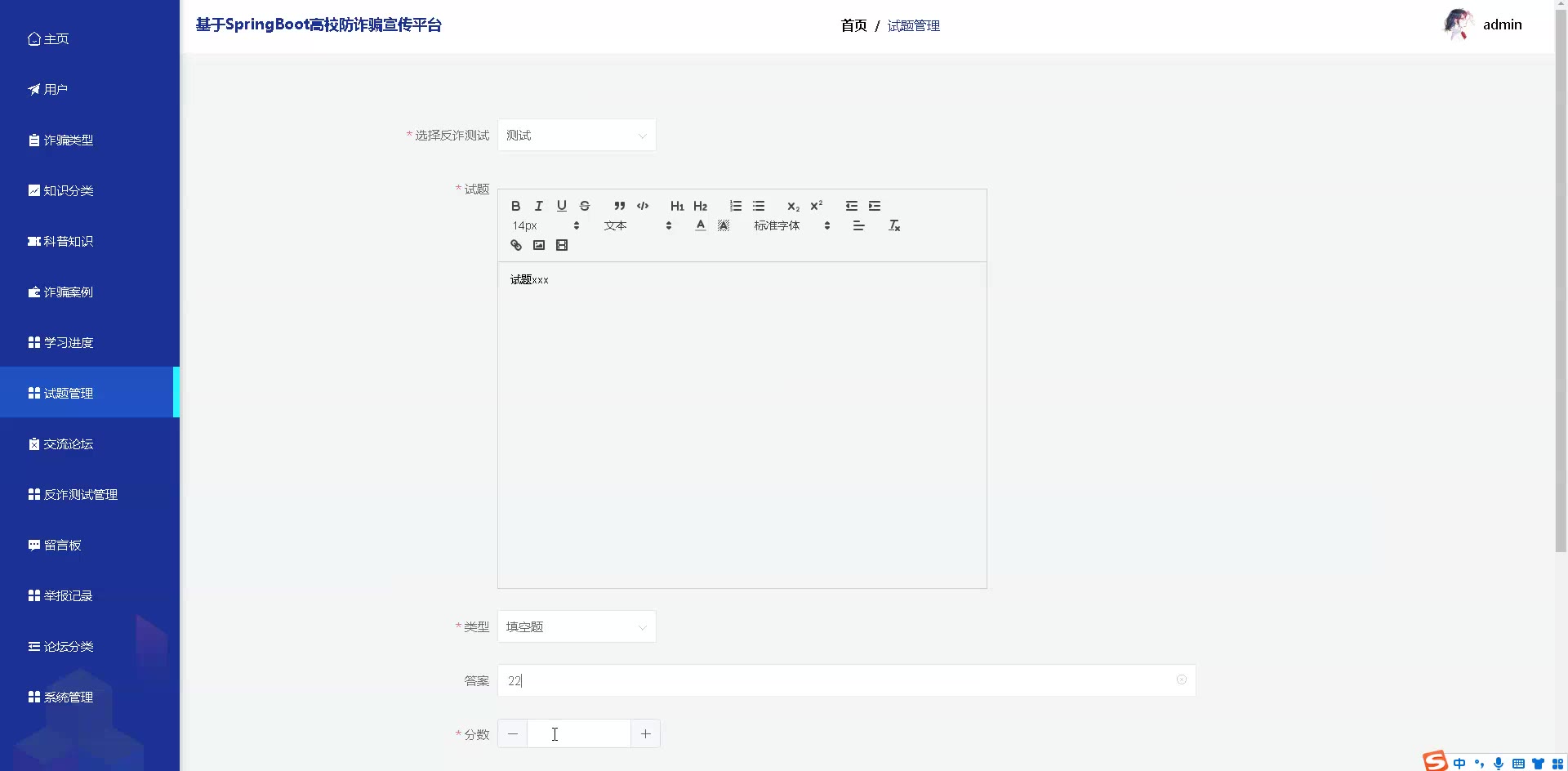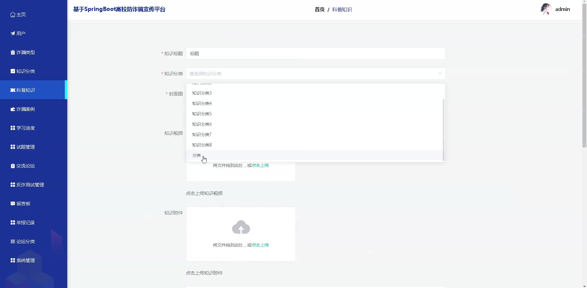 基于SpringBoot Vue高校防诈骗宣传平台源码+答辩PPT+论文springboot1877