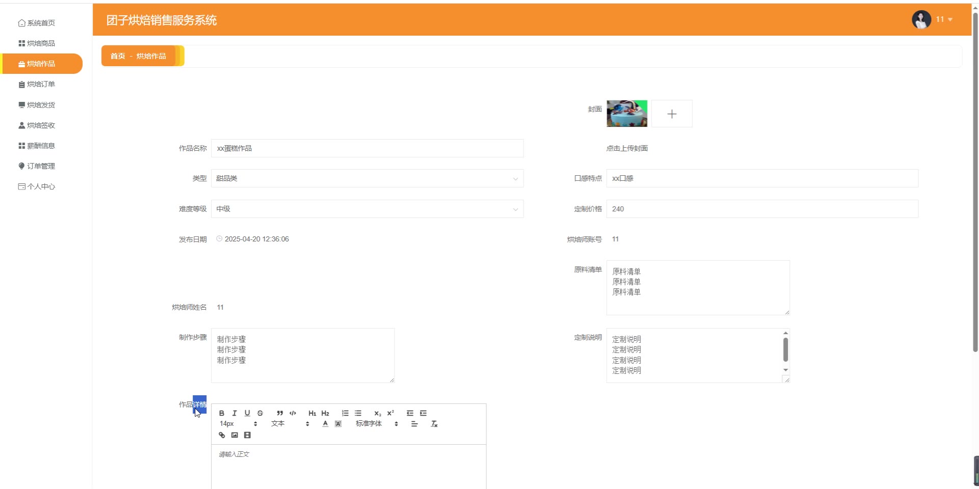 基于SpringBoot Vue团子烘焙销售服务系统源码+答辩PPT+论文springboot1907