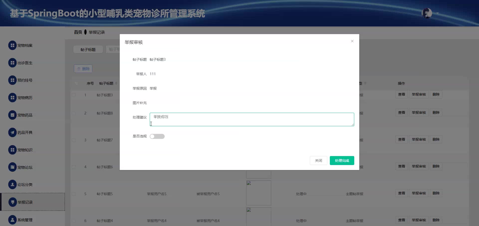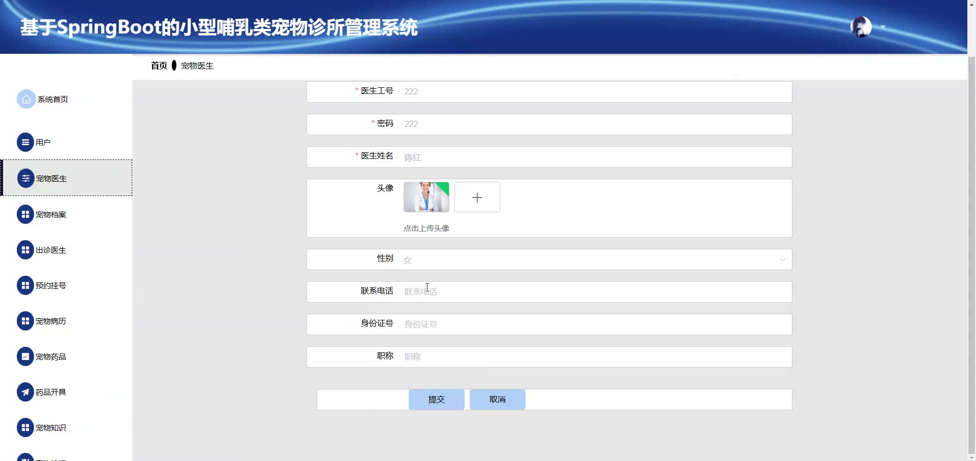 基于SpringBoot Vue小型哺乳类宠物诊所管理系统源码+答辩PPT+论文springboot1920