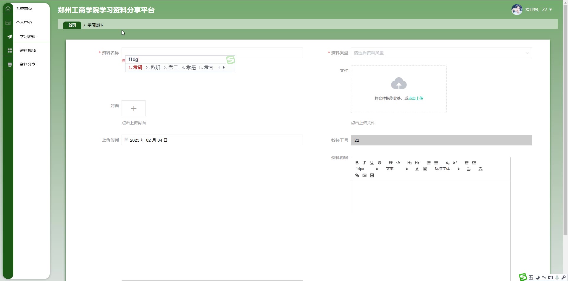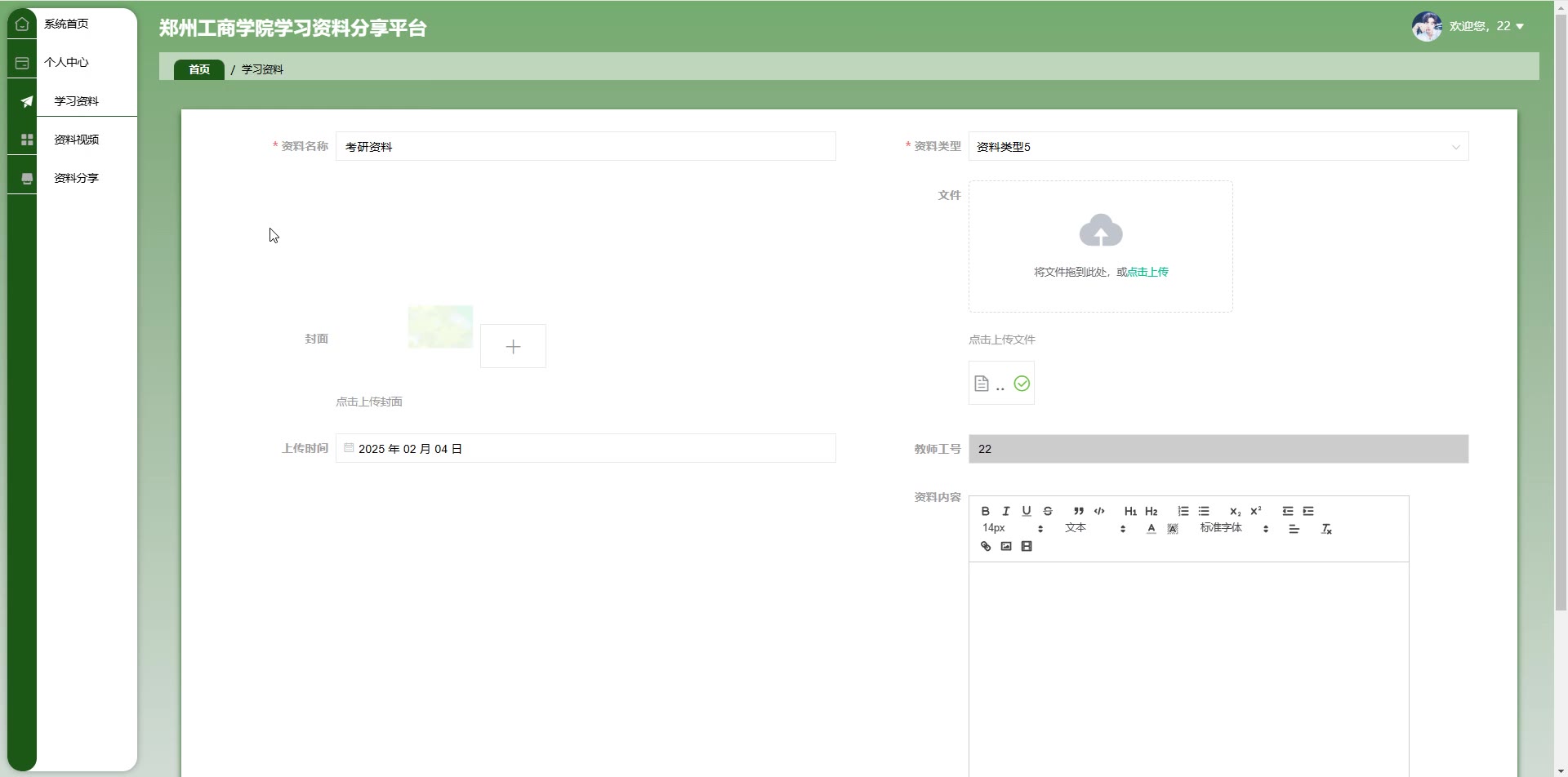 基于SpringBoot Vue学院学习资料分享平台源码+答辩PPT+论文springboot1922