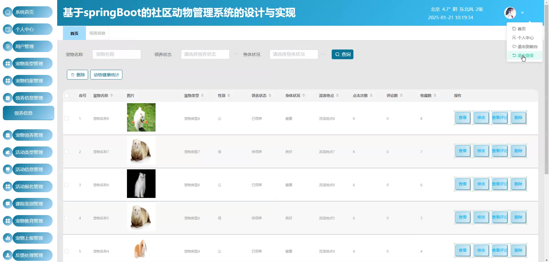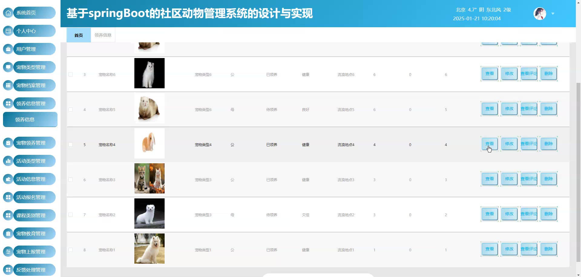 基于Springboot Vue社区动物管理系统源码(提供导入教程+讲解)springboot1925