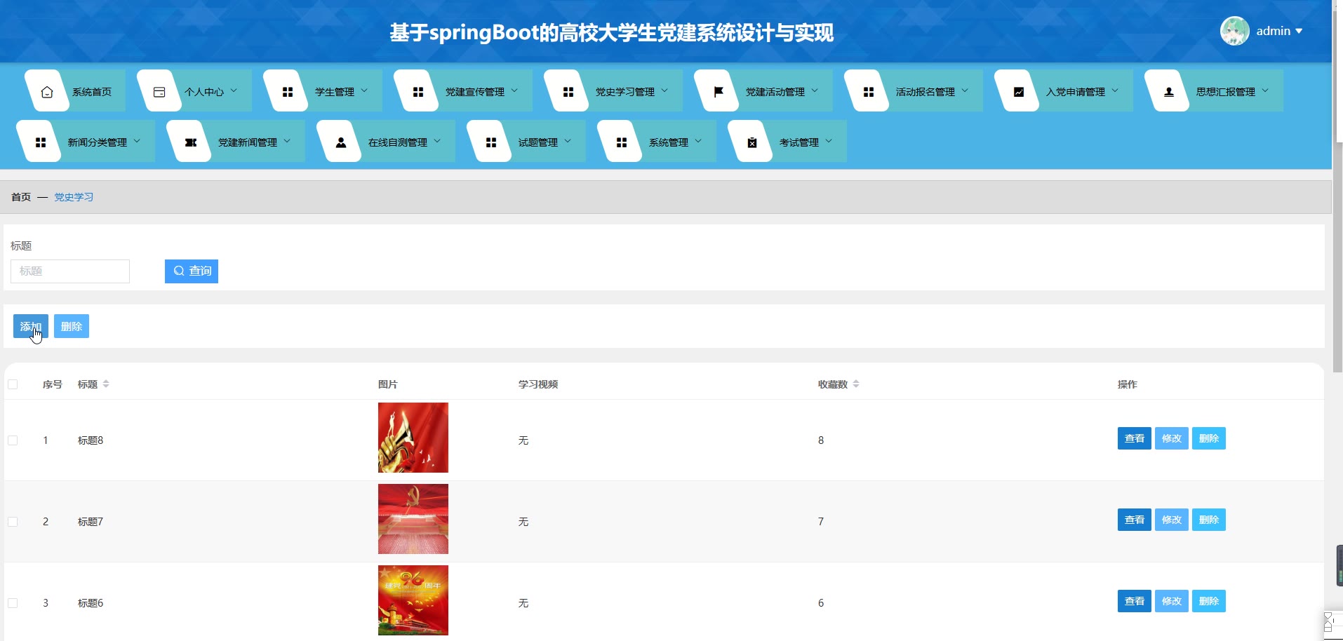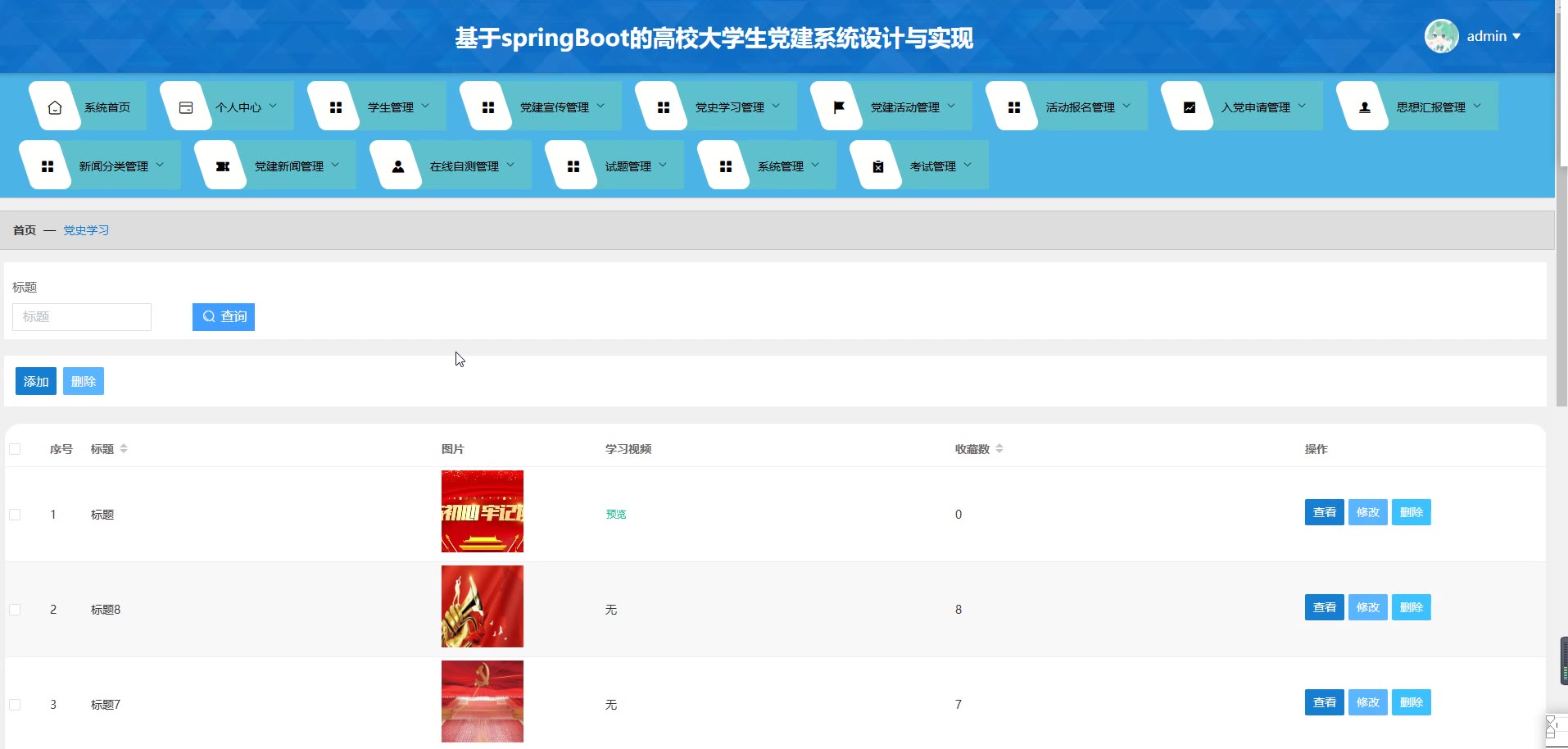 基于SpringBoot Vue的高校大学生党建系统源码(提供导入教程+讲解)springboot1984