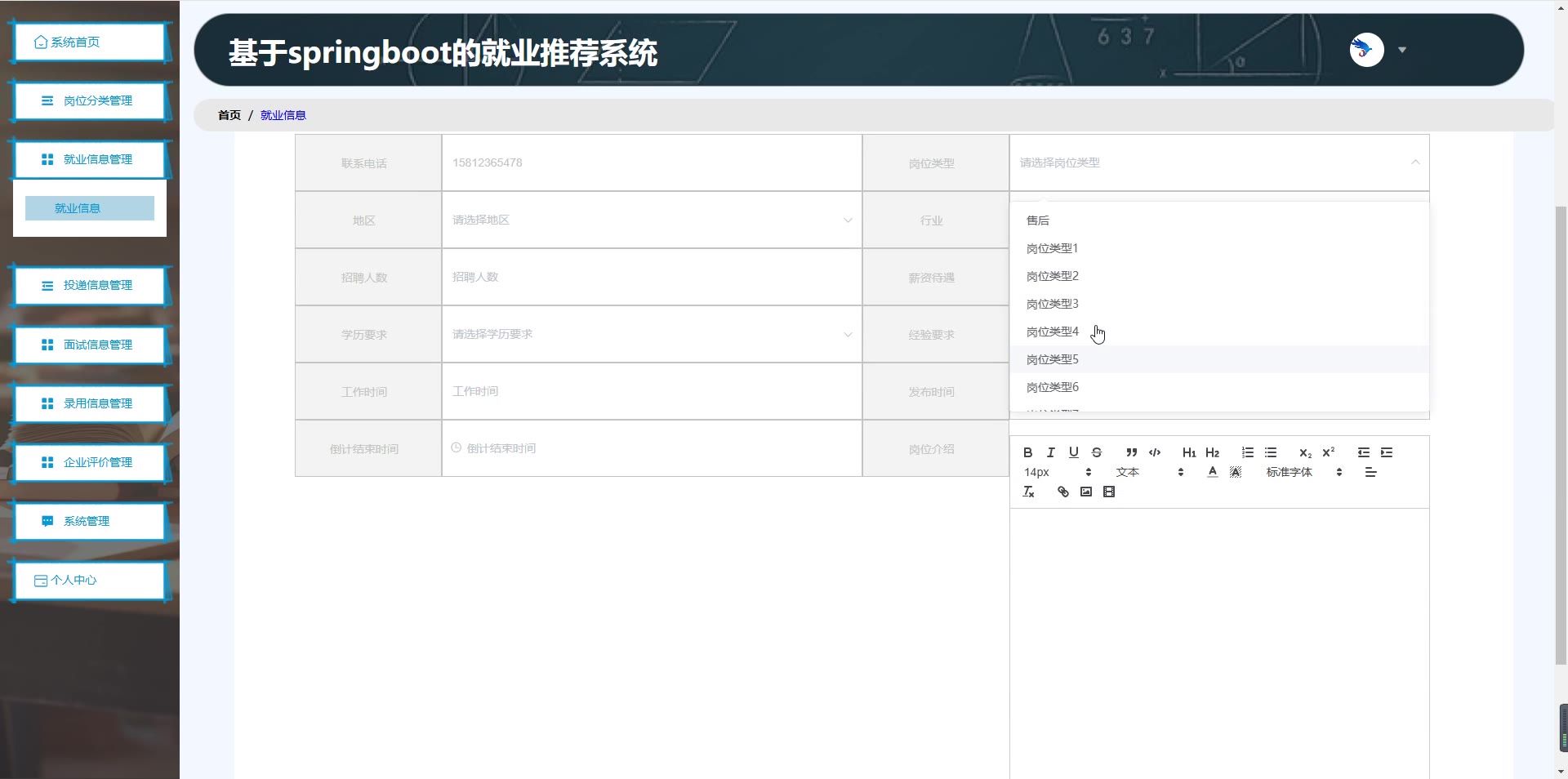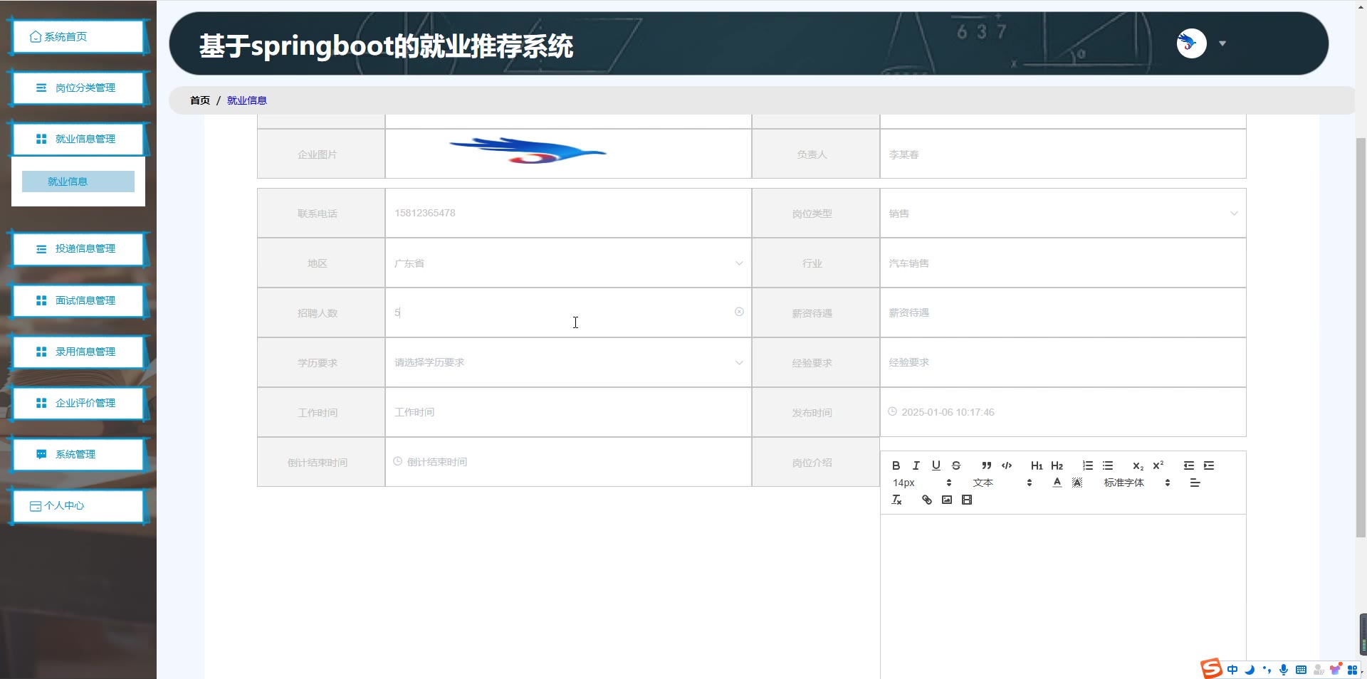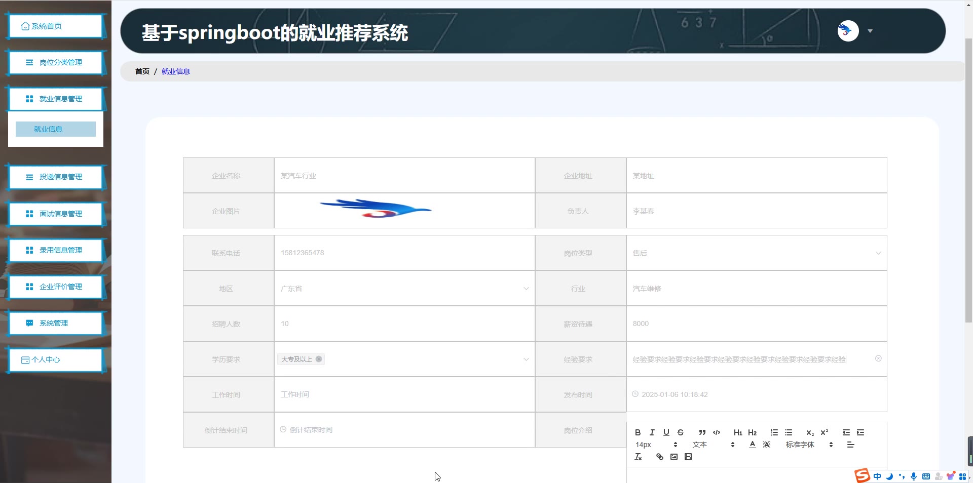 基于SpringBoot Vue的就业推荐系统源码(提供导入教程+讲解)springboot1986