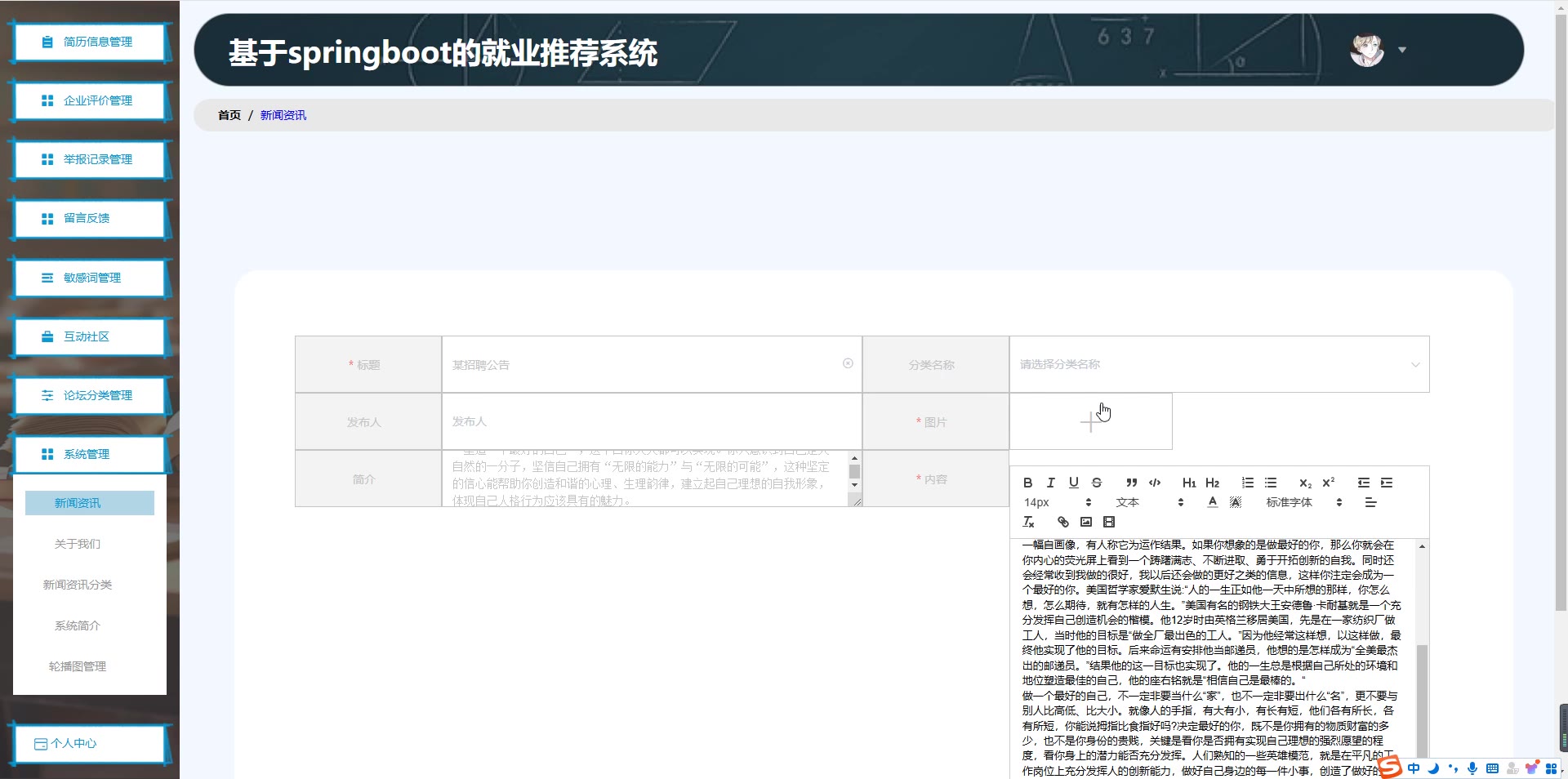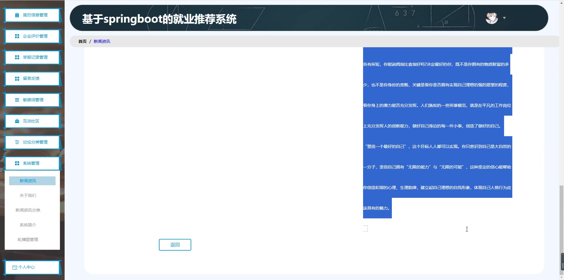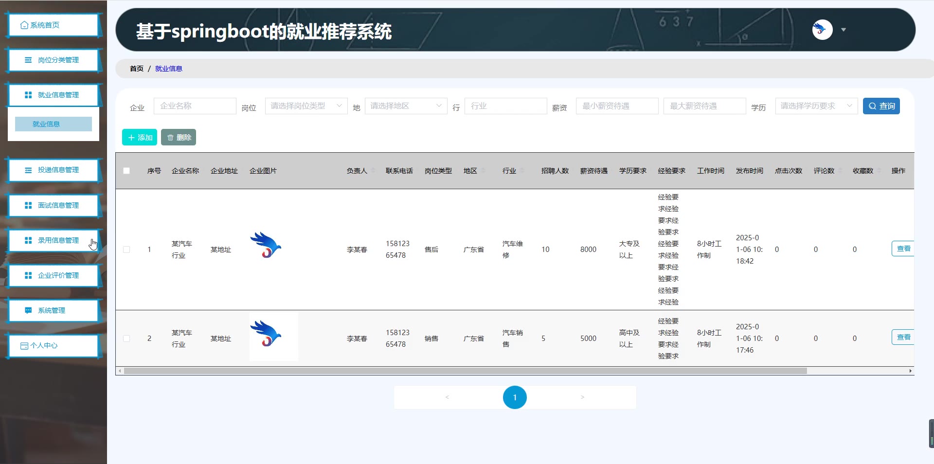 基于SpringBoot Vue的就业推荐系统源码(提供导入教程+讲解)springboot1986
