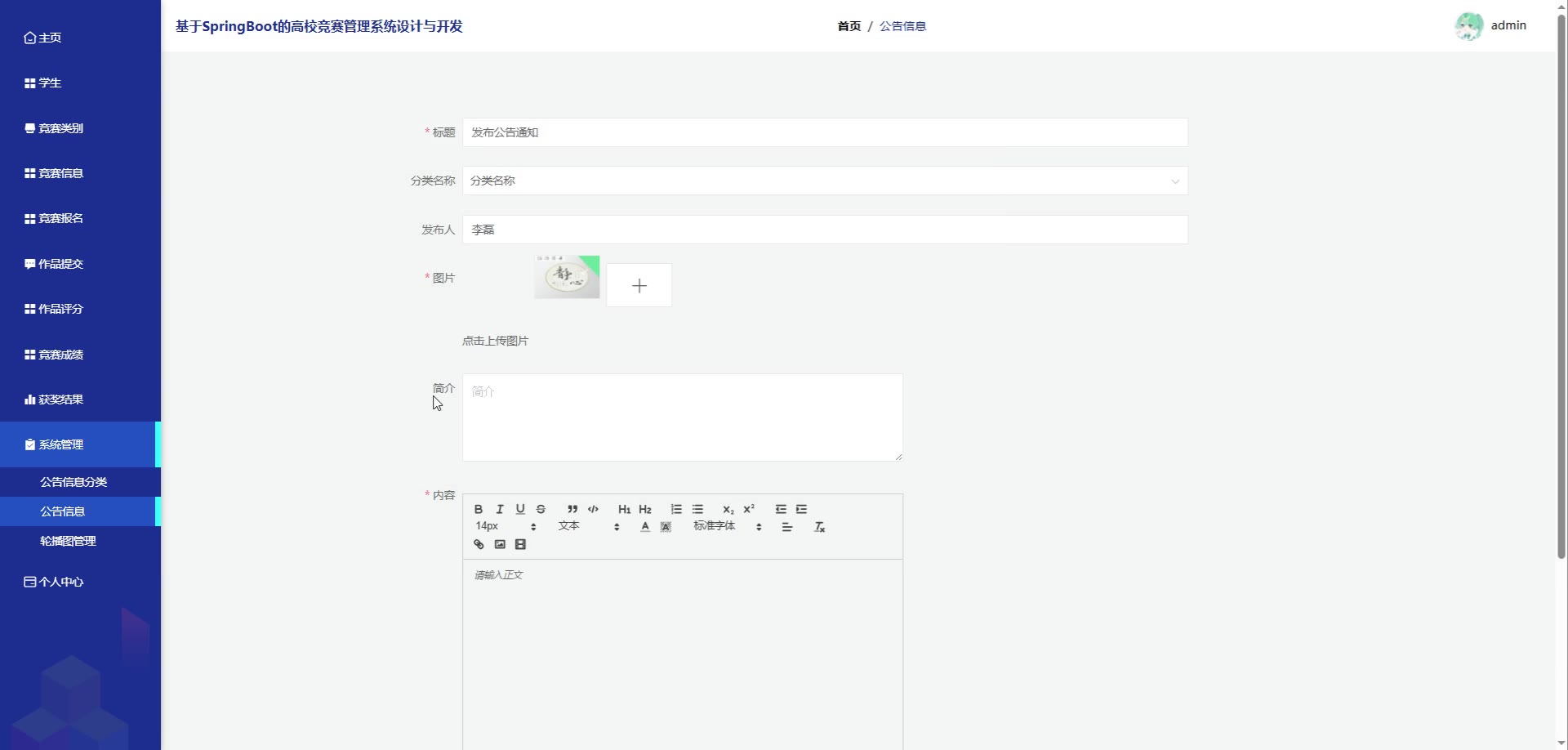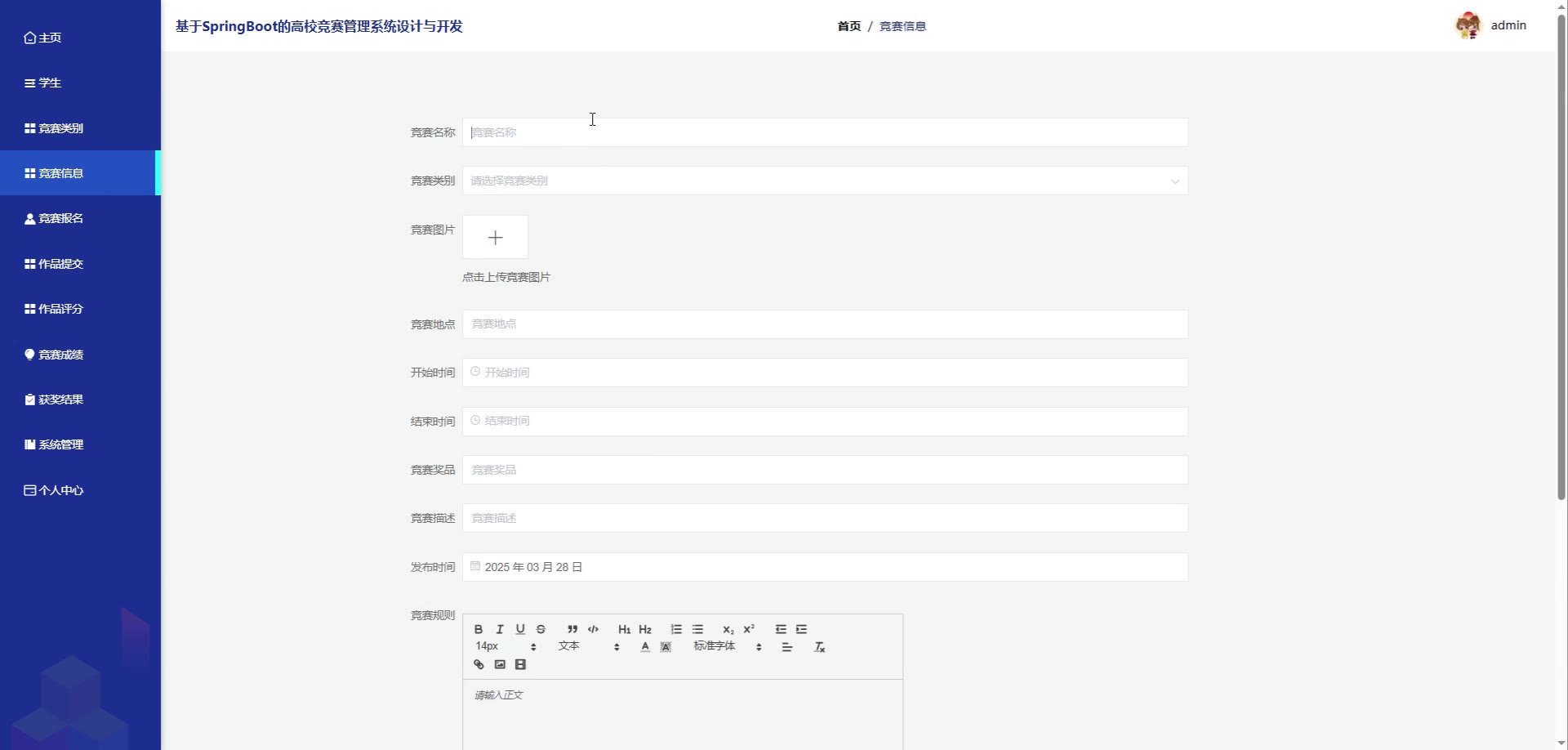 基于SpringBoot Vue的高校竞赛管理系统源码(提供导入教程+讲解)springboot1993