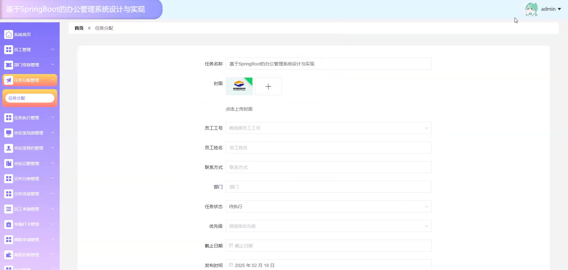 基于SpringBoot Vue的办公管理系统源码(提供导入教程+讲解)springboot2003