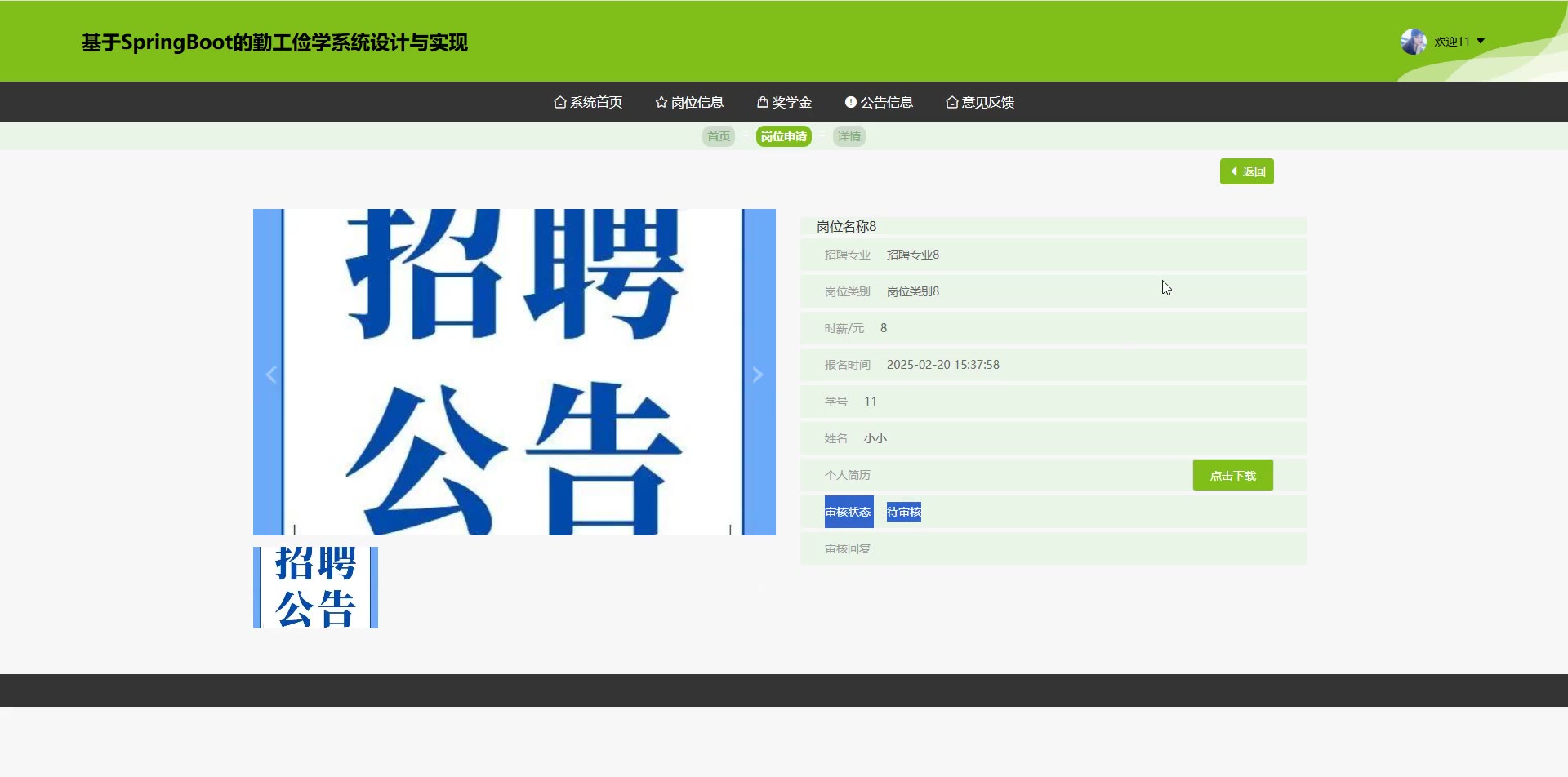 基于SpringBoot Vue的勤工俭学系统源码(提供导入教程+讲解)springboot2007
