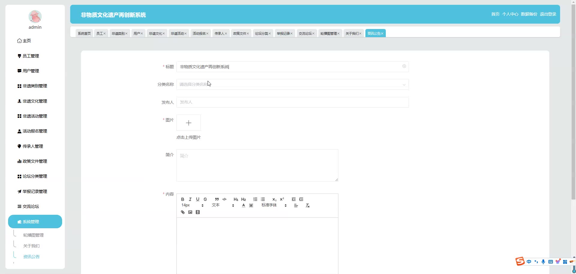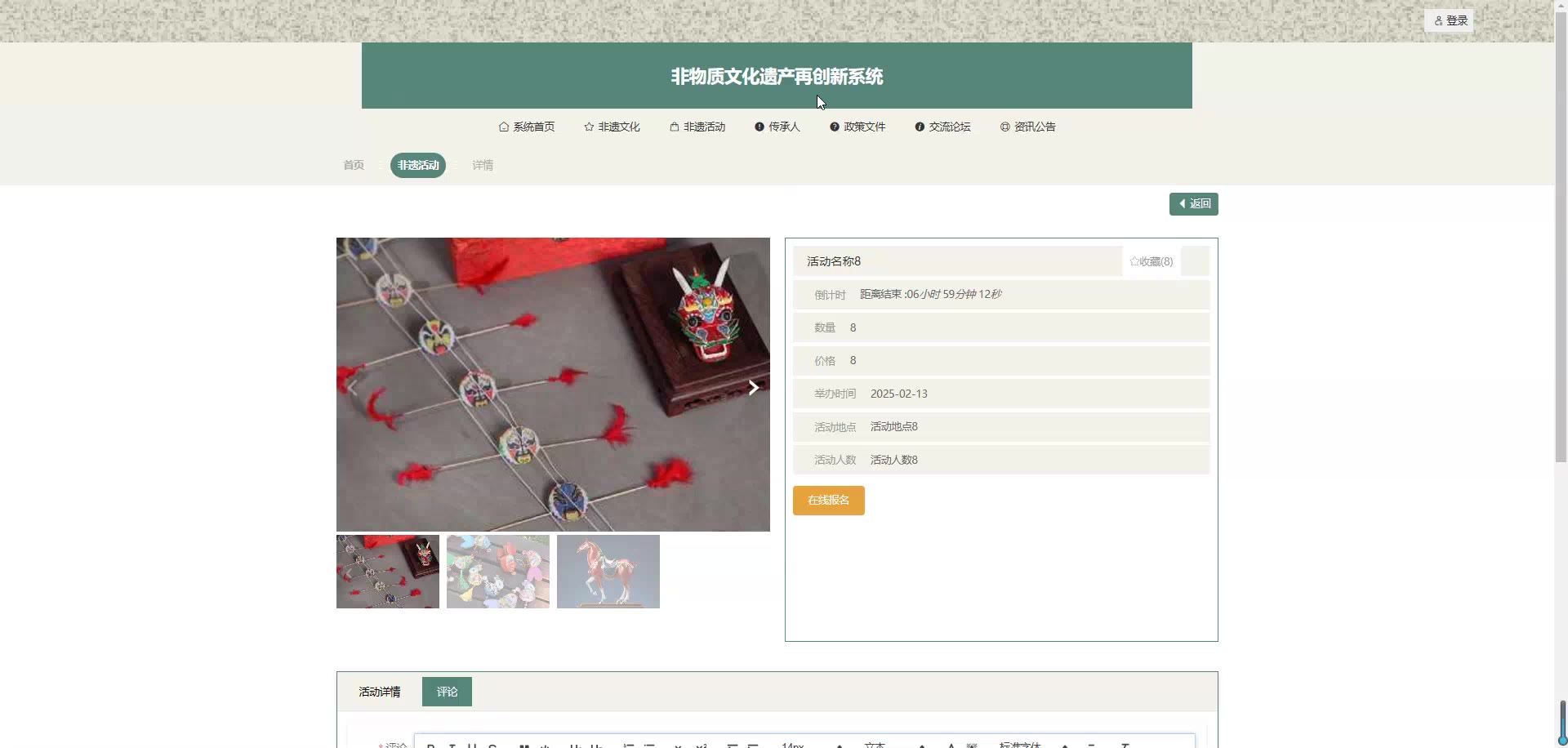 基于SpringBoot Vue的非物质文化遗产再创新系统源码(提供导入教程+讲解)springboot2015