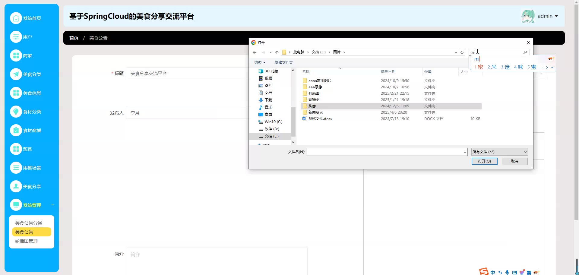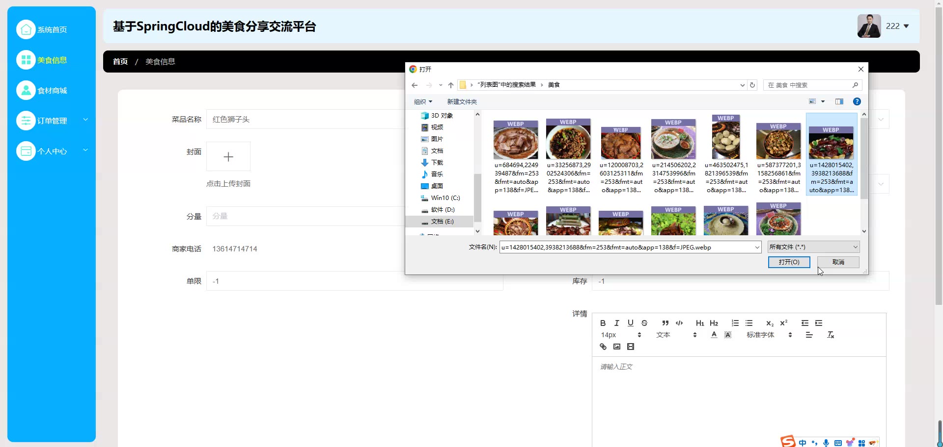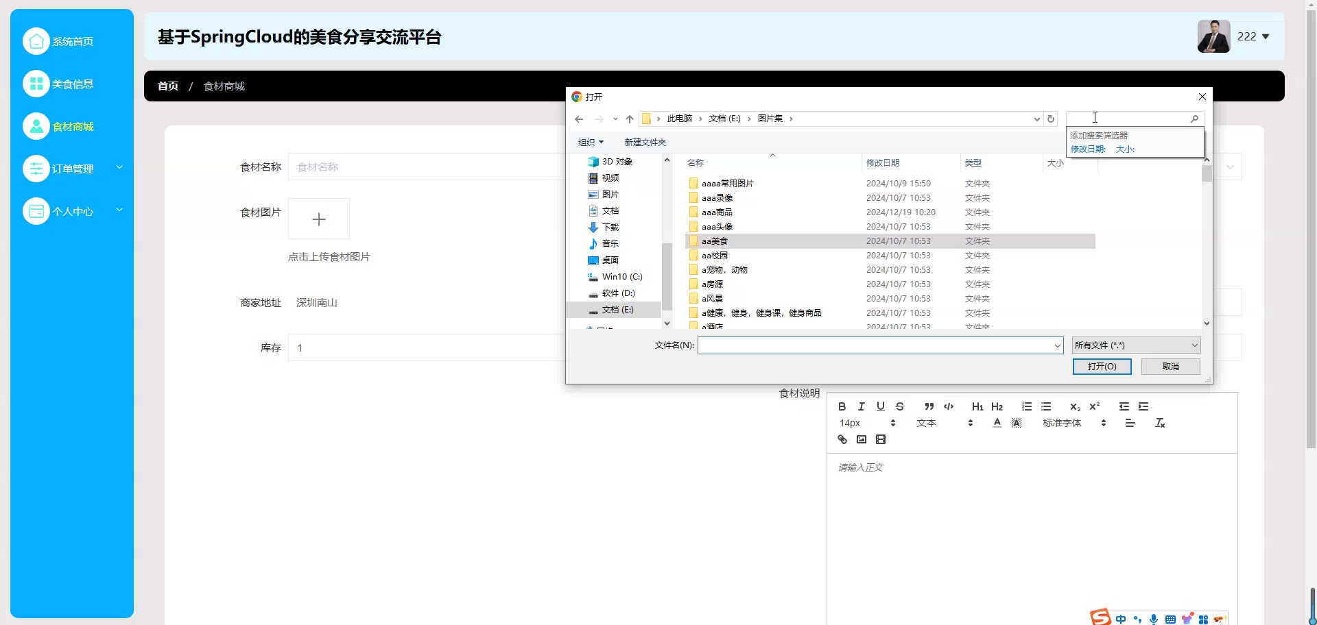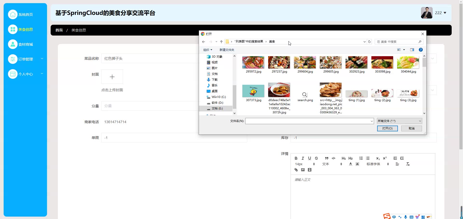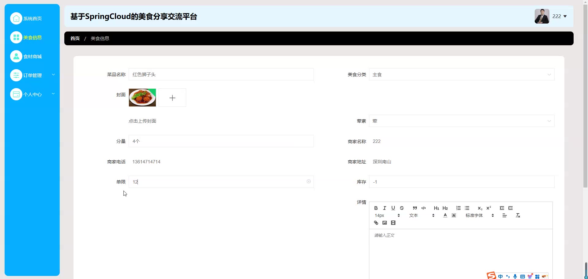 基于SpringCloud Vue的美食分享交流平台源码(提供导入教程+讲解)springboot2066