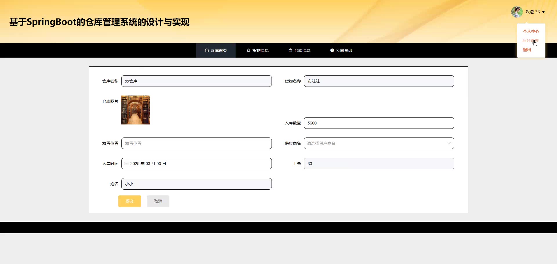 基于SpringBoot Vue的仓库管理系统源码(提供导入教程+讲解)springboot2111