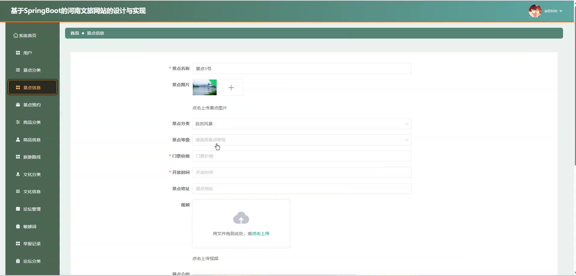 基于SpringBoot Vue的河南文旅网站源码(提供导入教程+讲解)springboot2117