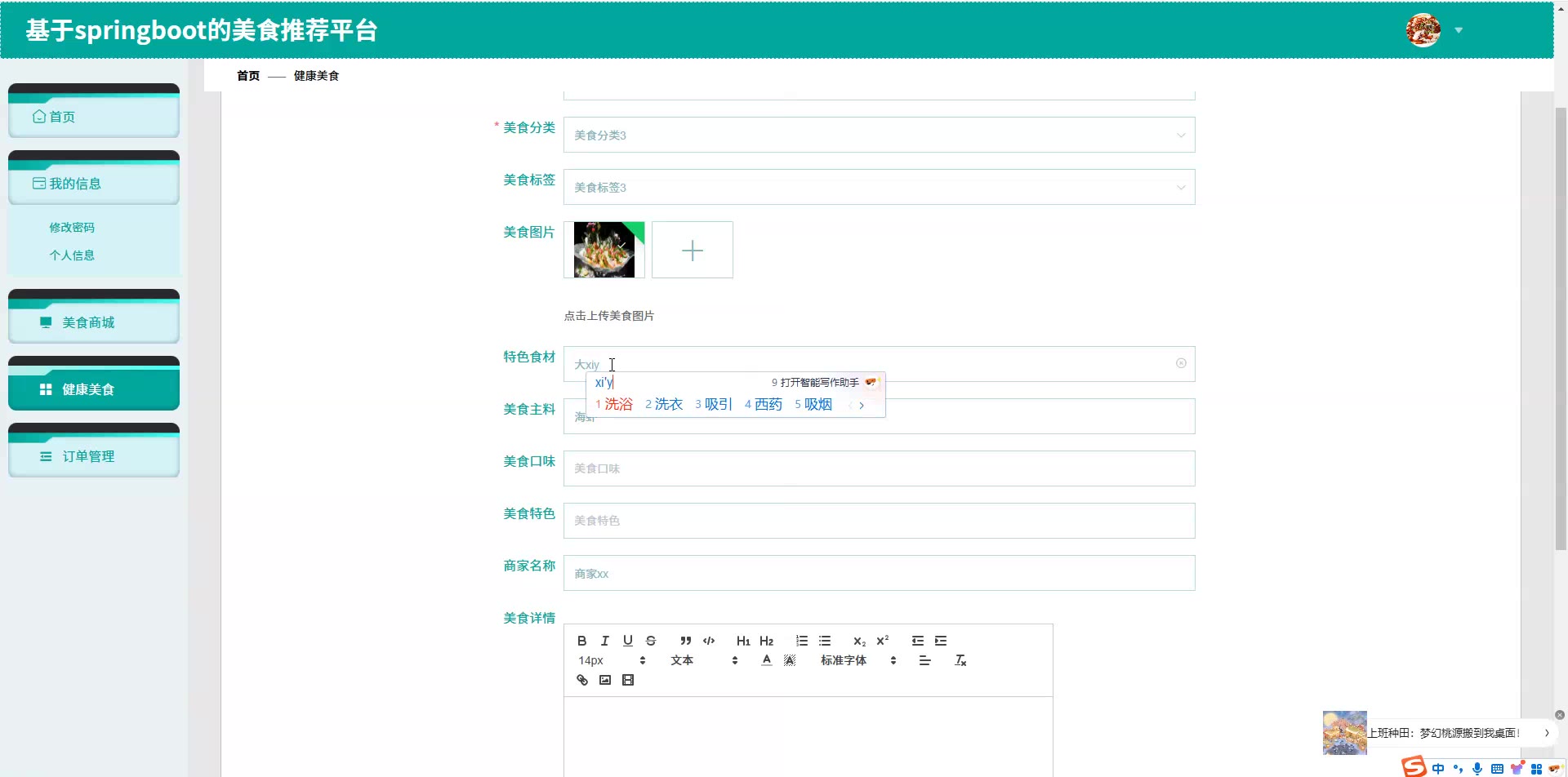 基于SpringBoot Vue的美食推荐平台源码(提供导入教程+讲解)springboot2128