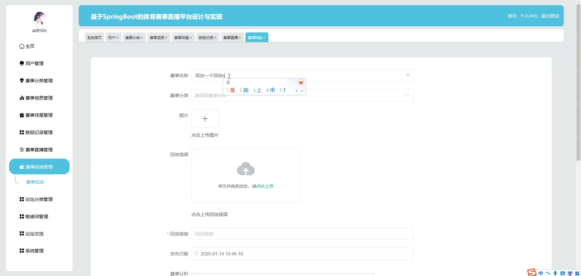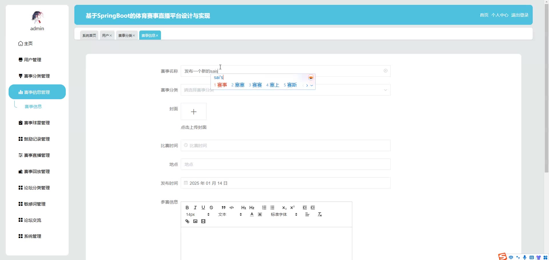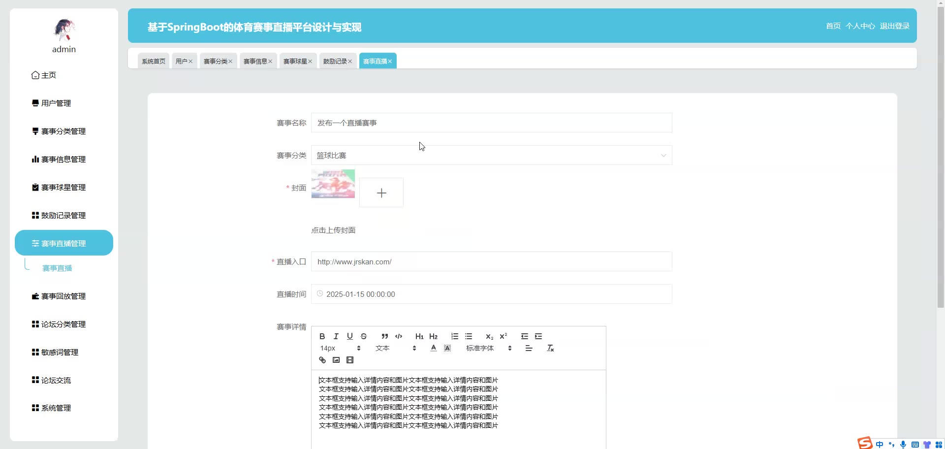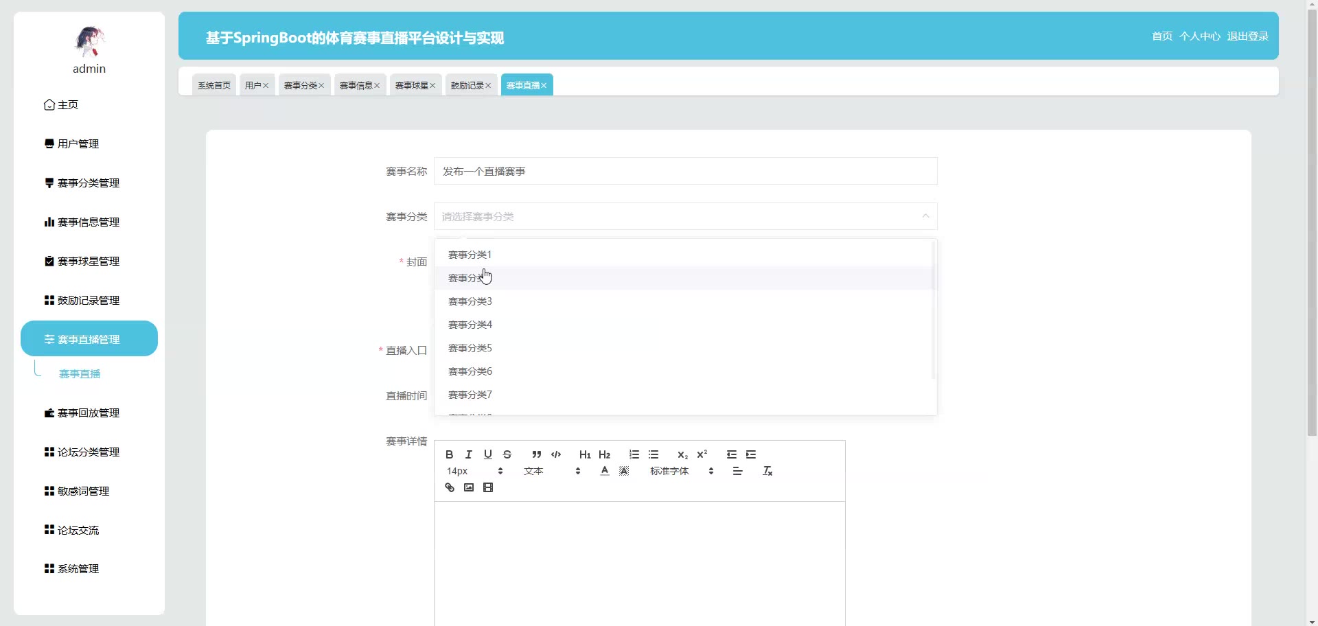 基于SpringBoot Vue的体育赛事直播平台源码(提供导入教程+讲解)springboot2131
