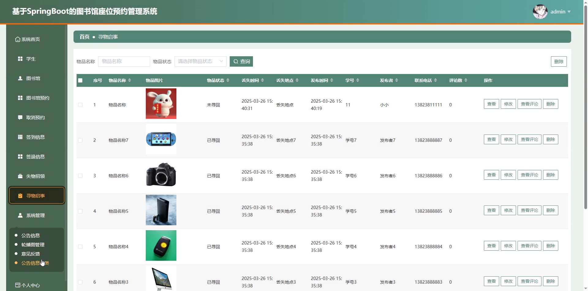 基于SpringBoot Vue的图书馆座位预约管理系统源码(提供导入教程+讲解)springboot2132