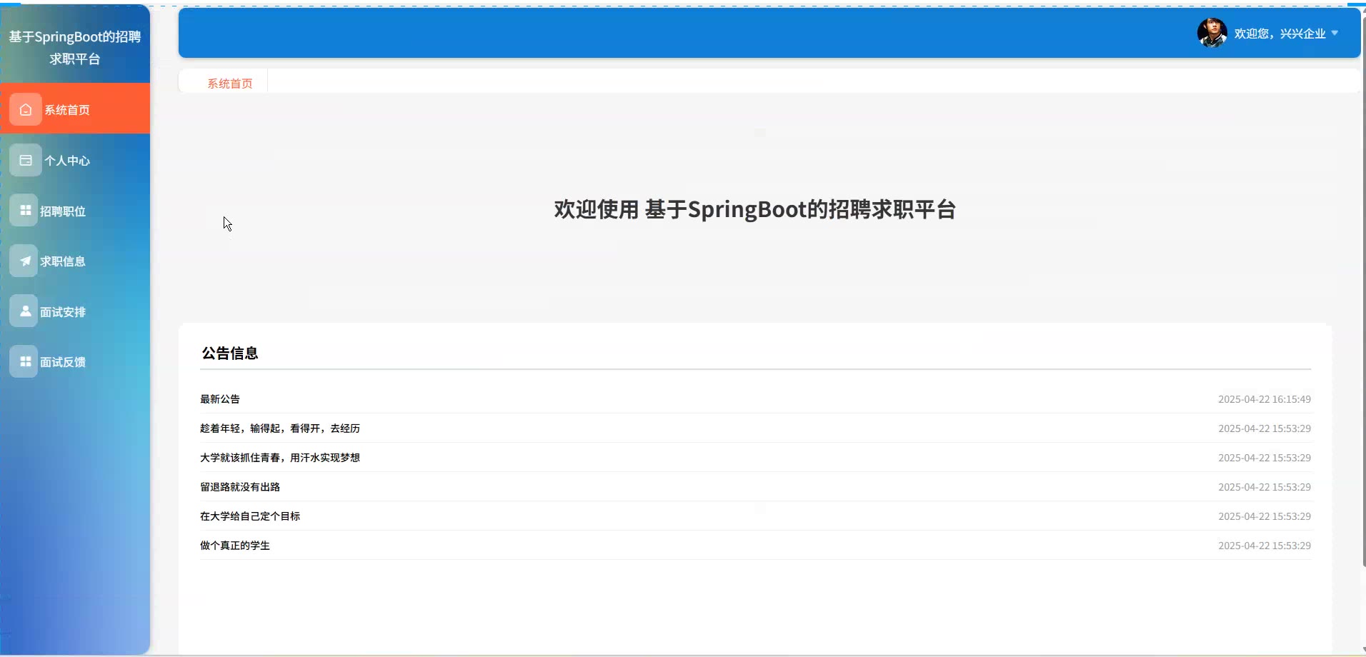 基于SpringBoot Vue的招聘求职平台源码(提供导入教程+讲解)springboot2140