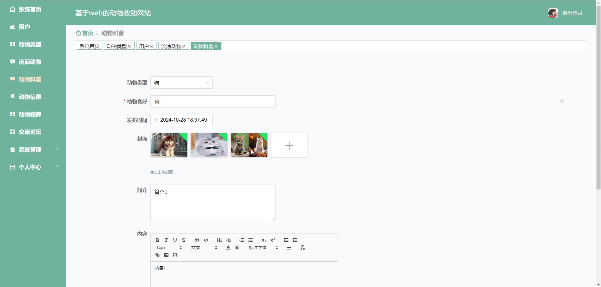 基于web的SpringBoot Vue动物救助网站源码(提供导入教程+讲解)springboot2150