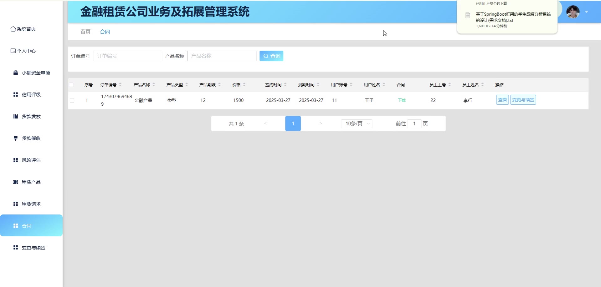 基于SpringBoot Vue的金融租赁公司业务及拓展管理系统源码(提供导入教程+讲解)springboot2163