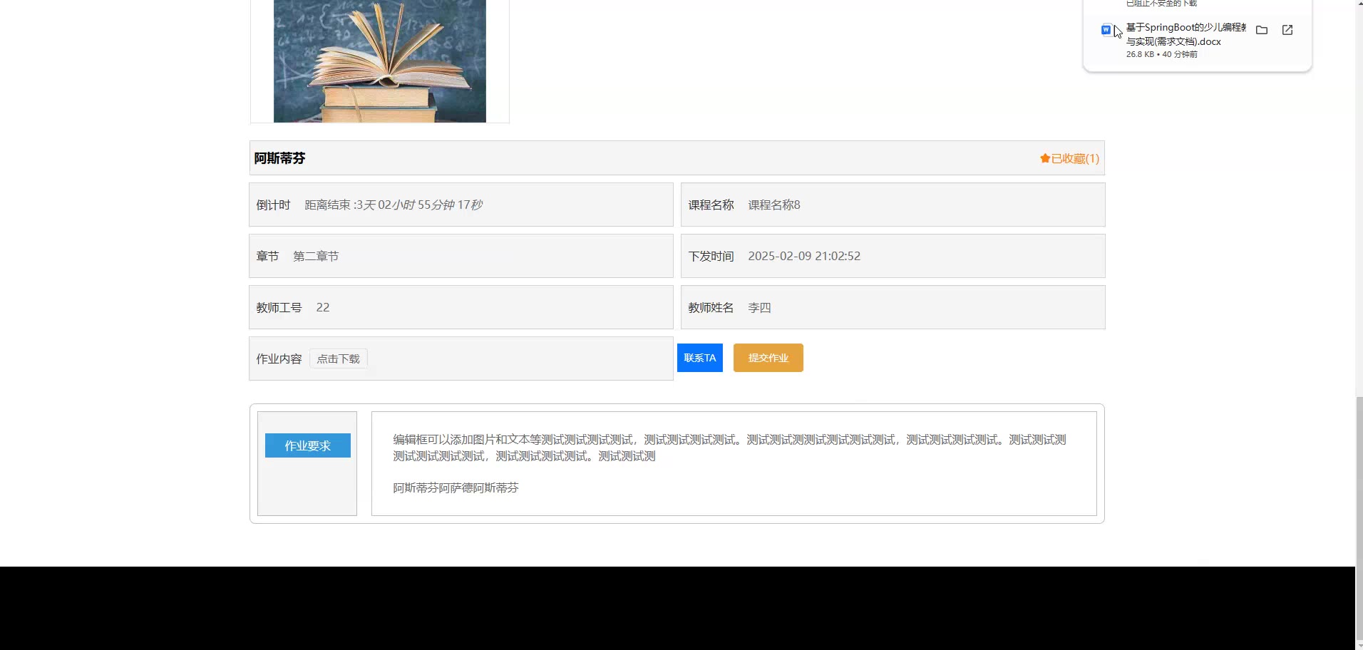 基于SpringBoot的大学生电子作业管理系统源码(提供导入教程+讲解)springboot2226