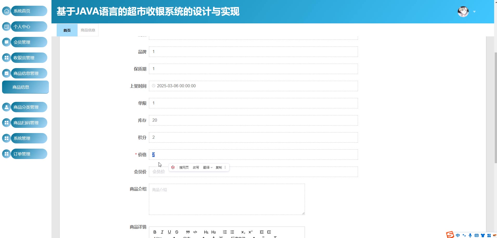 基于JAVA语言的超市收银系统源码(提供导入教程+讲解)springboot2256