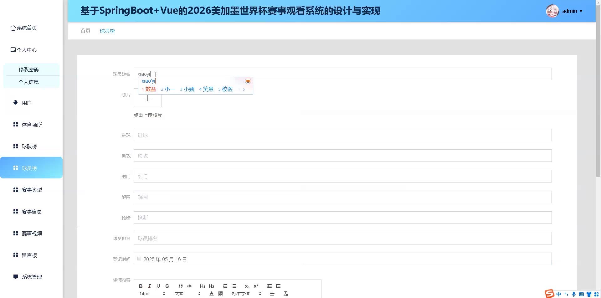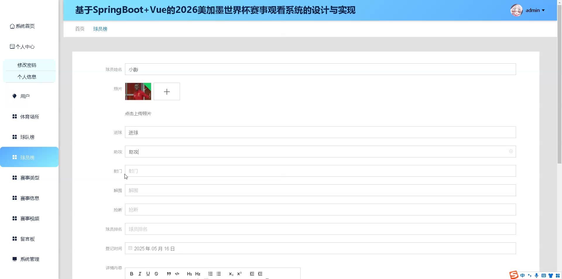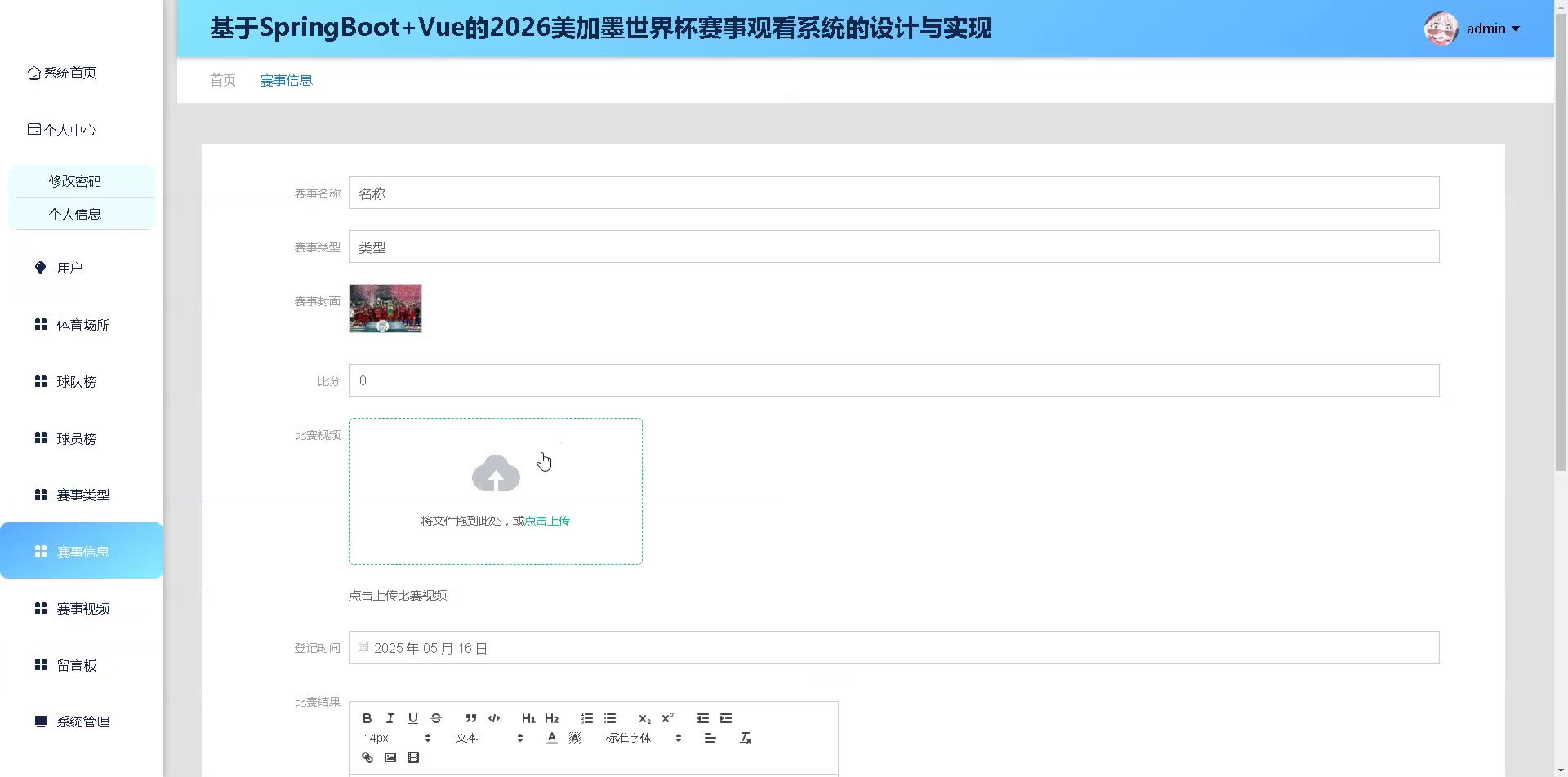 基于SpringBoot+Vue的美加墨世界杯赛事观看系统源码(提供导入教程+讲解)springboot2257