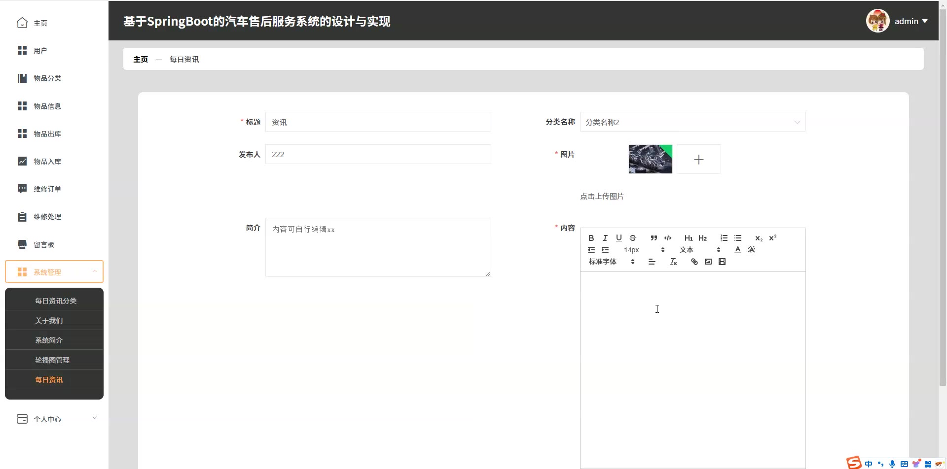 基于SpringBoot的汽车售后服务系统源码(提供导入教程+讲解)springboot2282