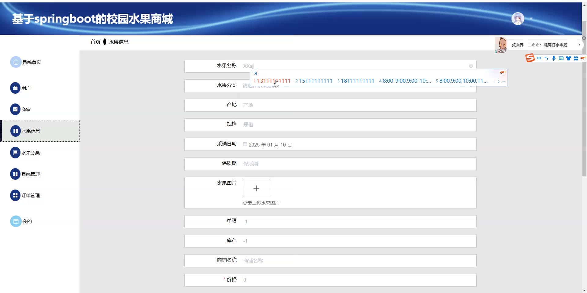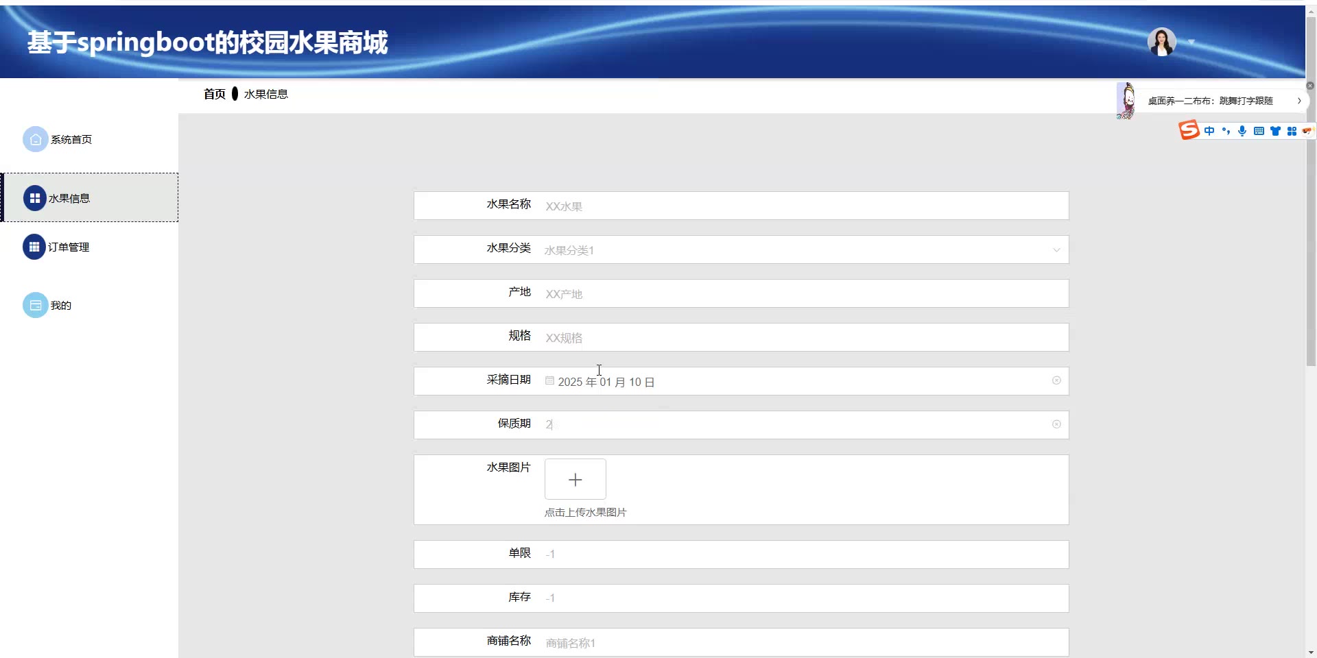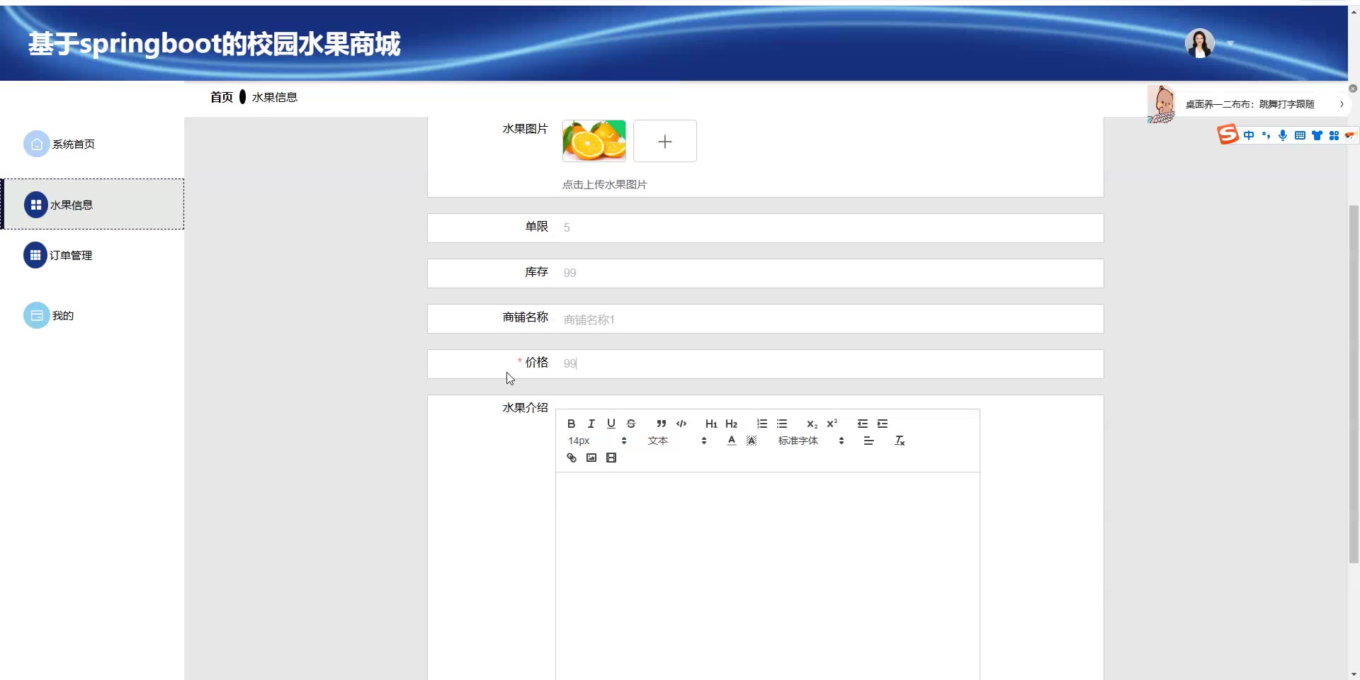 基于springboot的校园水果商城源码(提供导入教程+讲解)springboot2295