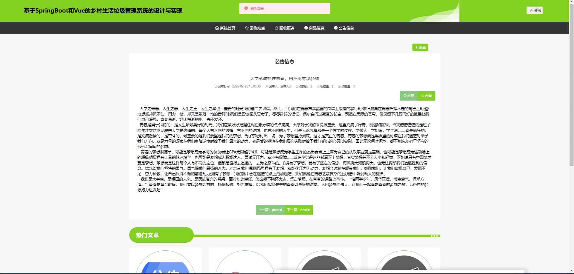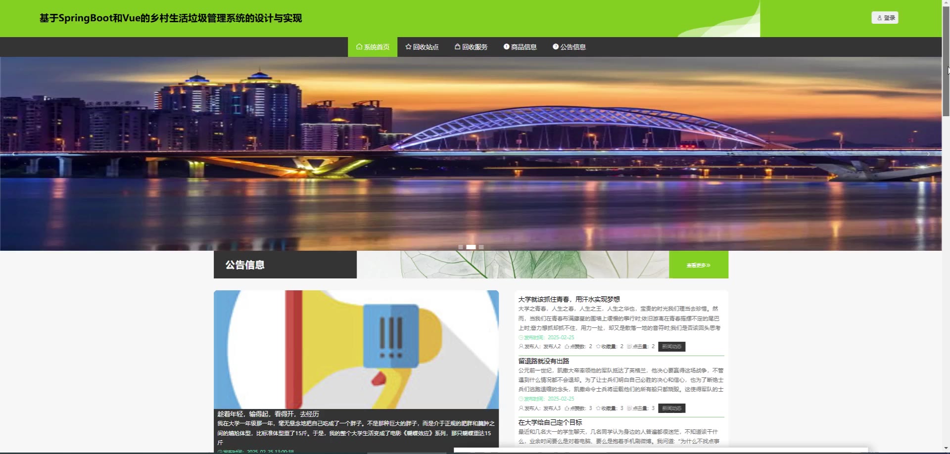 基于SpringBoot和Vue的乡村生活垃圾管理系统源码(提供导入教程+讲解)springboot2304