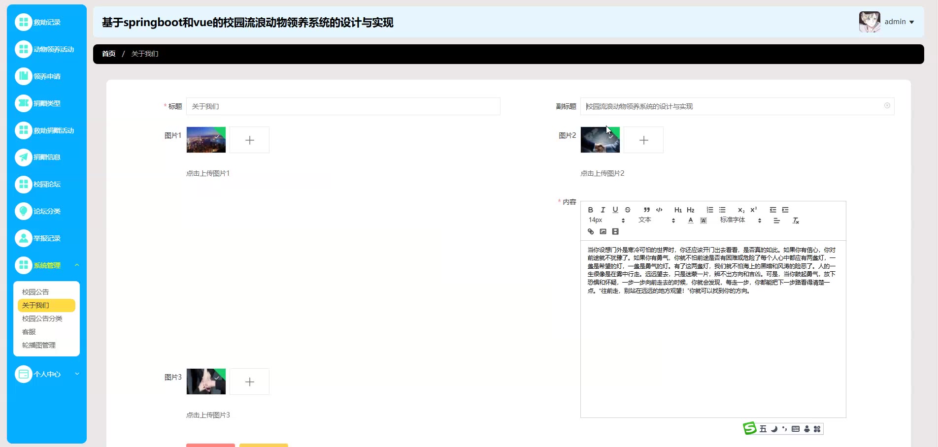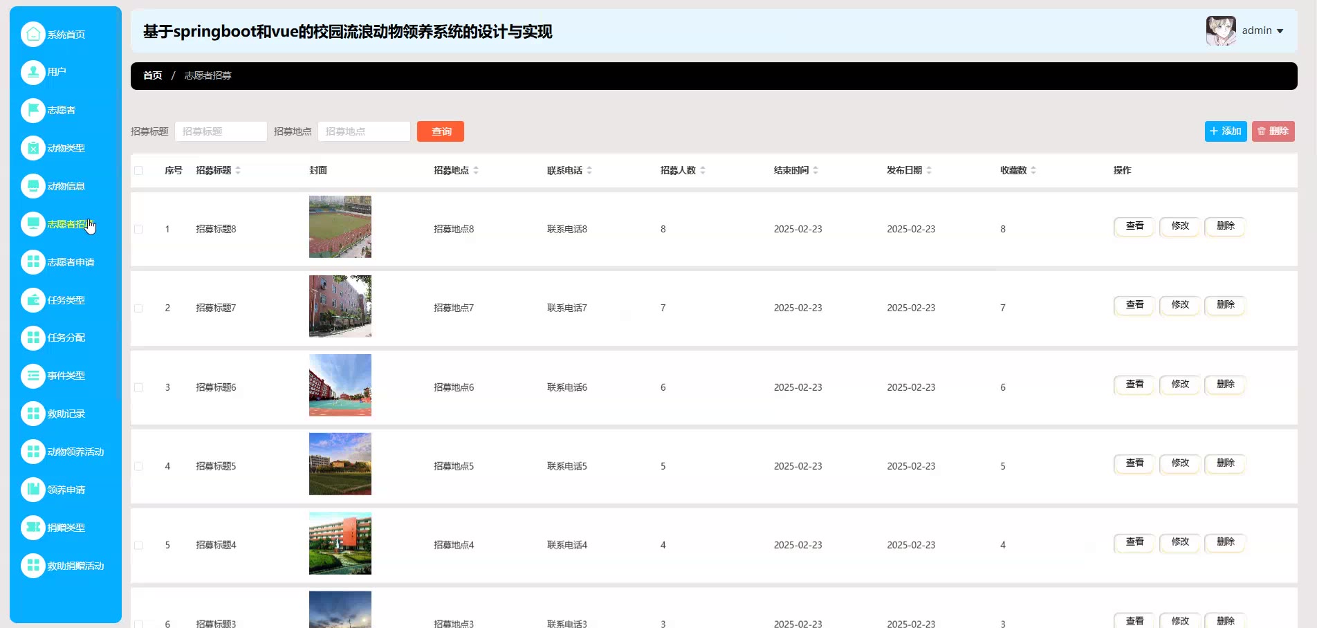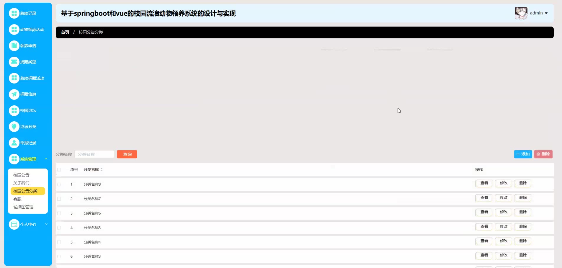 基于springboot和vue的校园流浪动物领养系统源码(提供导入教程+讲解)springboot2305